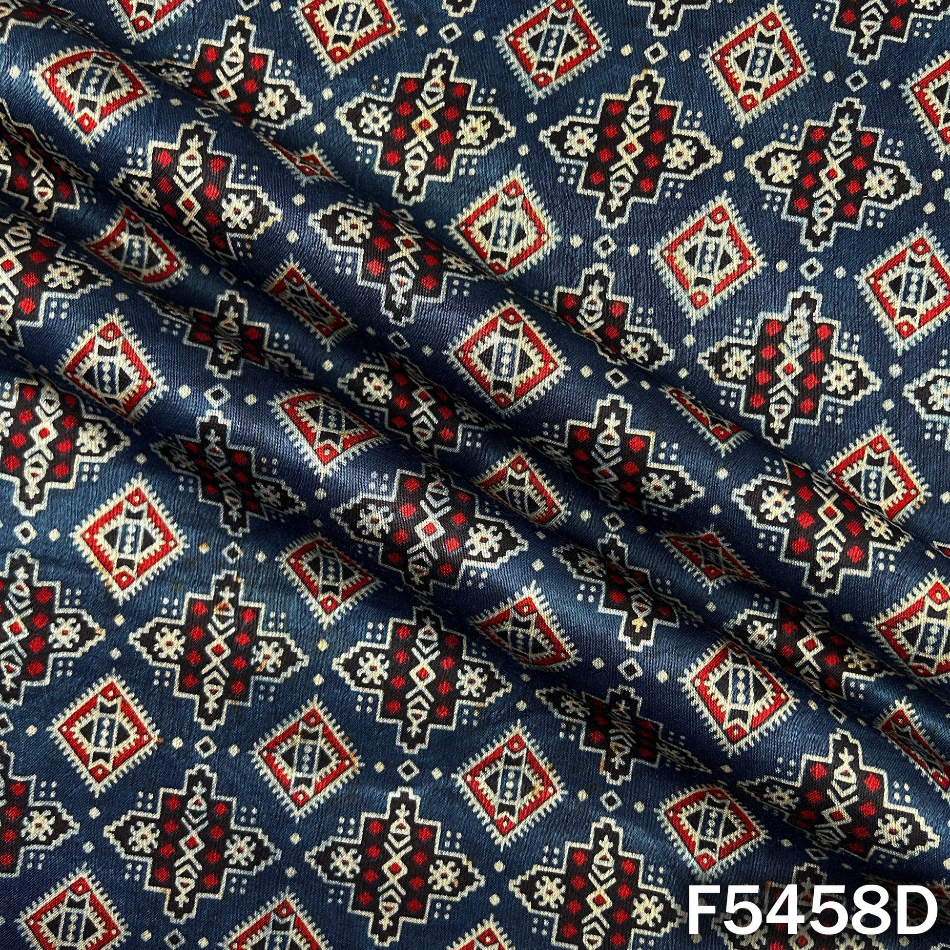 Ajrakh Print Gajji Silk Fabric - F5458