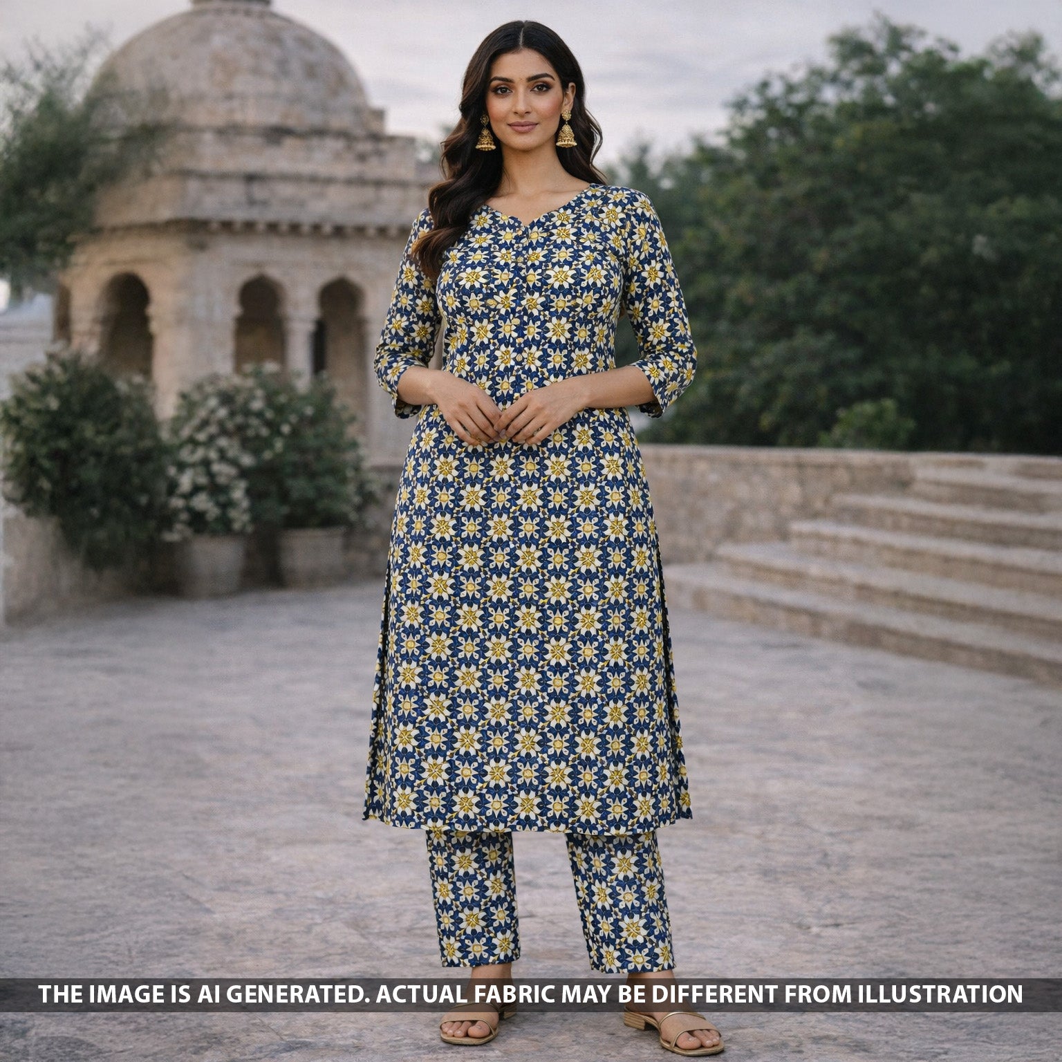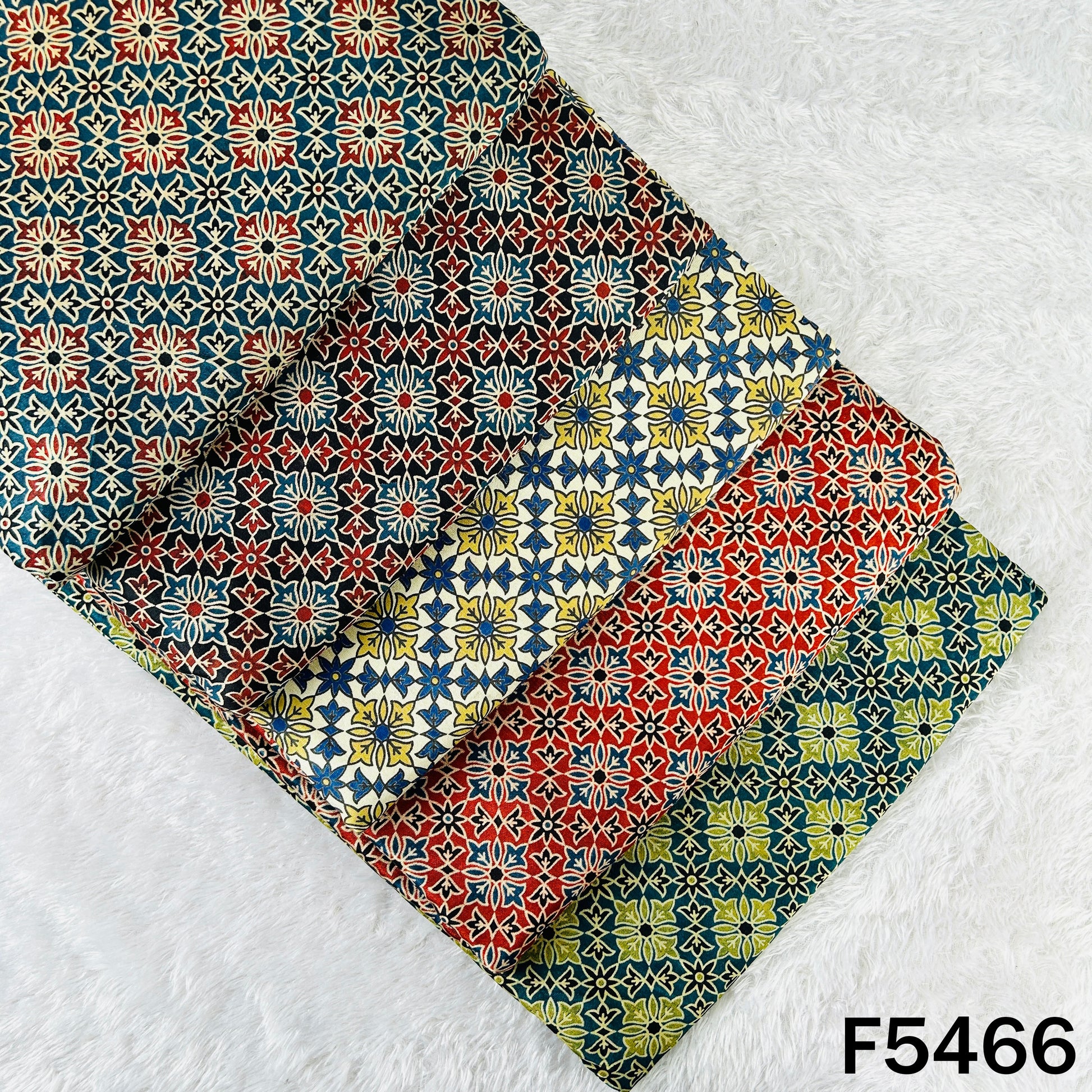 • Rich Ajrakh-inspired prints on luxurious Gajji silk, offering a smooth texture with a graceful drape. Perfect for elegant sarees, festive outfits, and statement ethnic wear.