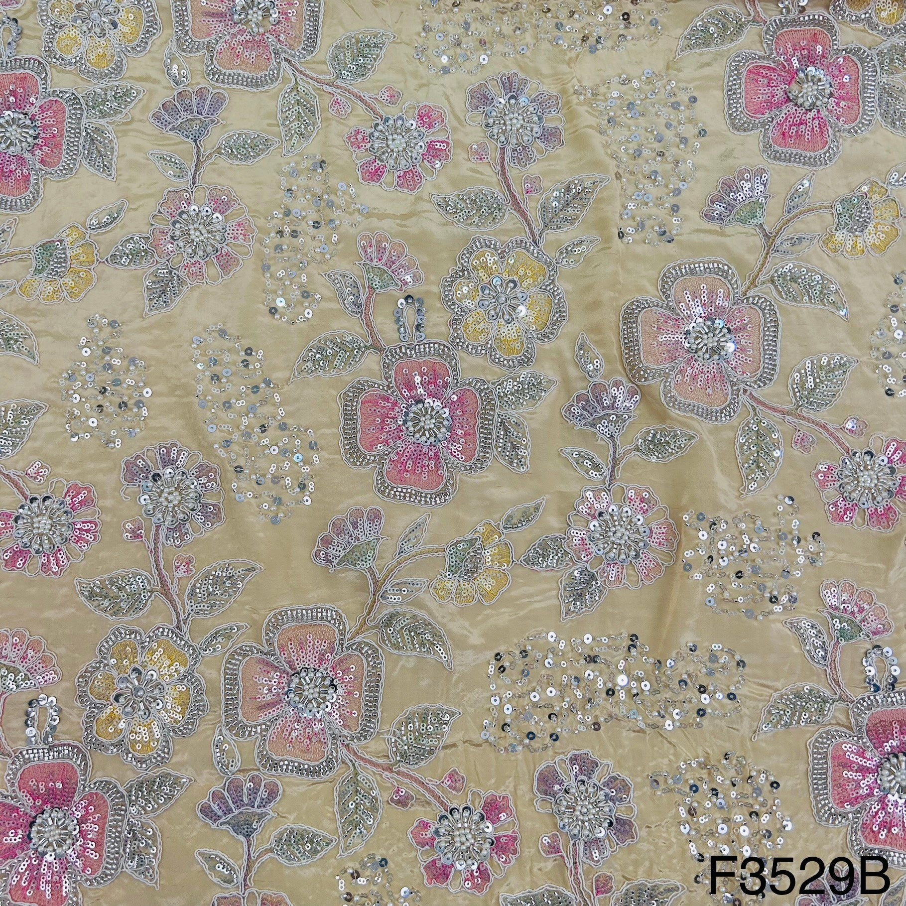 Beads & Pearl Hard Work Embroidered Viscose Crepe Fabric-F3529