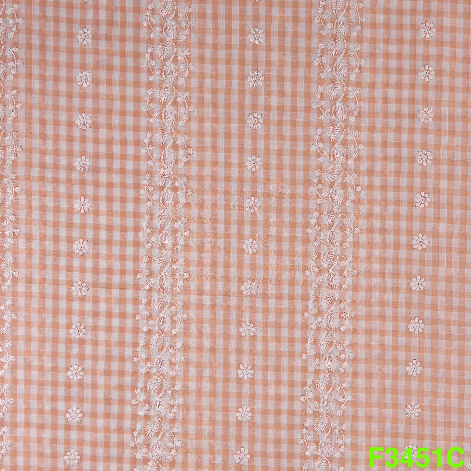Check Thread Embroidered Cotton Fabric-F3451