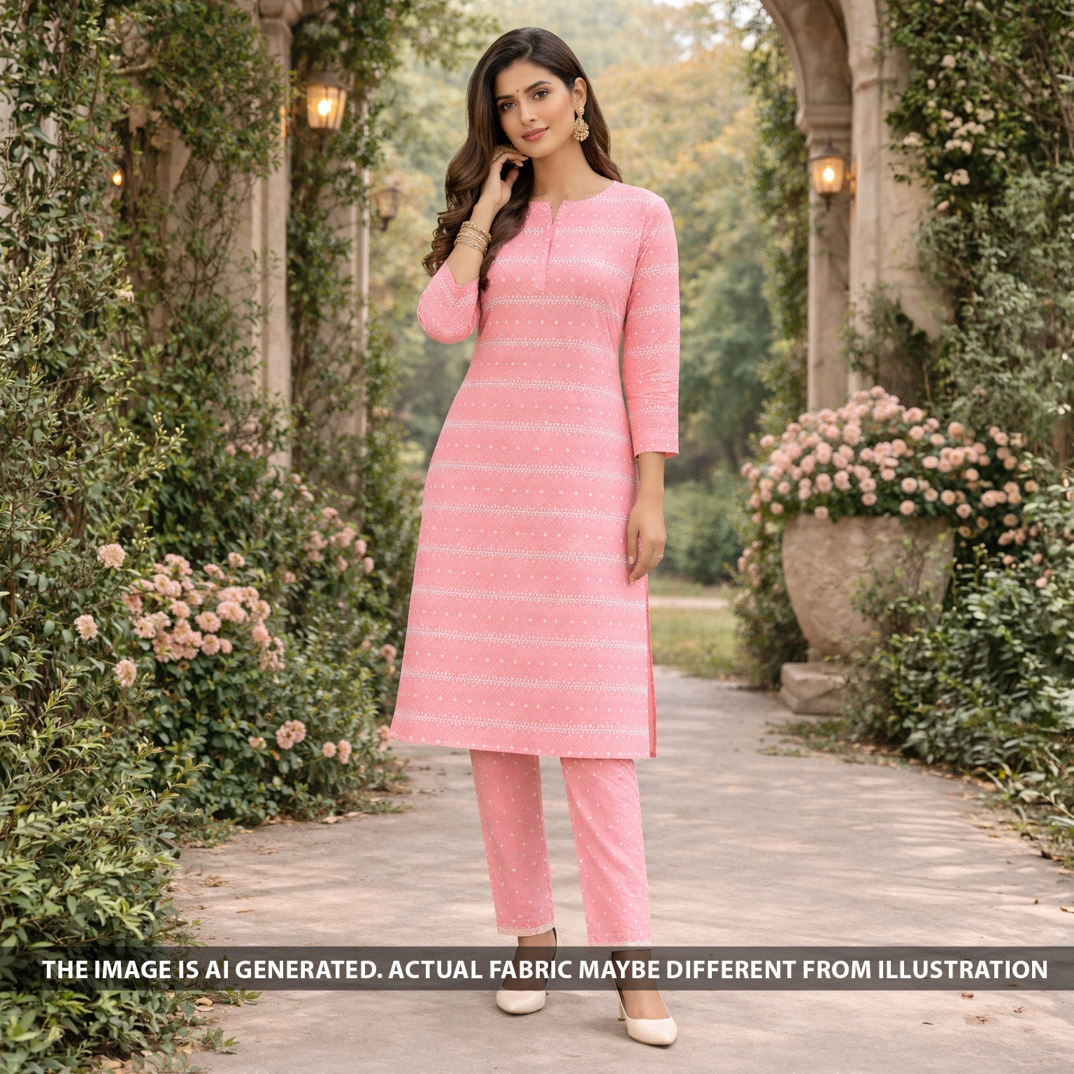 • Elegant cotton fabric set featuring delicate chikankari embroidery over a charming base. The subtle floral motifs and embroidered stripes add a graceful handcrafted appeal, while the soft cotton texture ensures breathability and comfort.