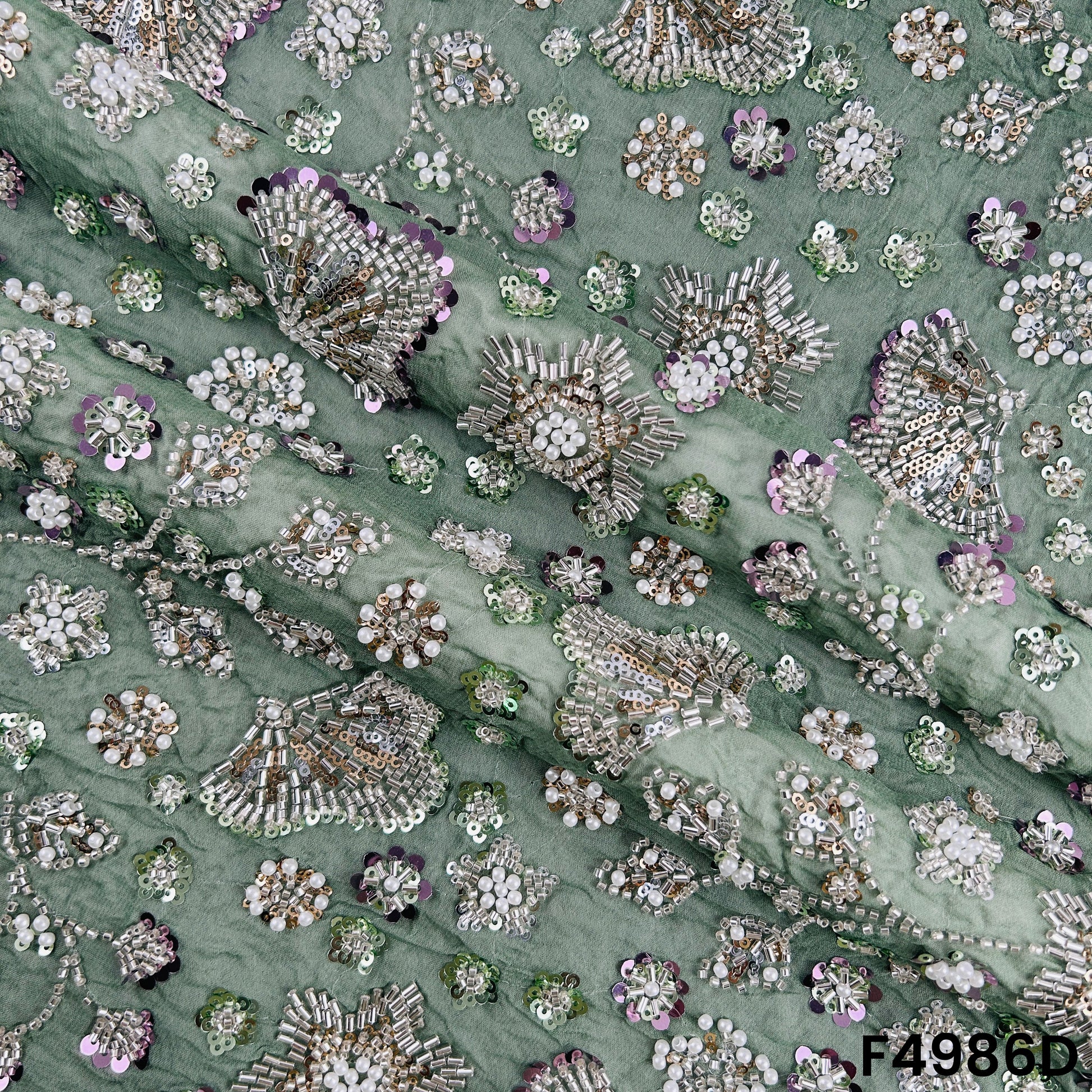 Cut Dana Pearls Embroidered Georgette Fabric-F4986
