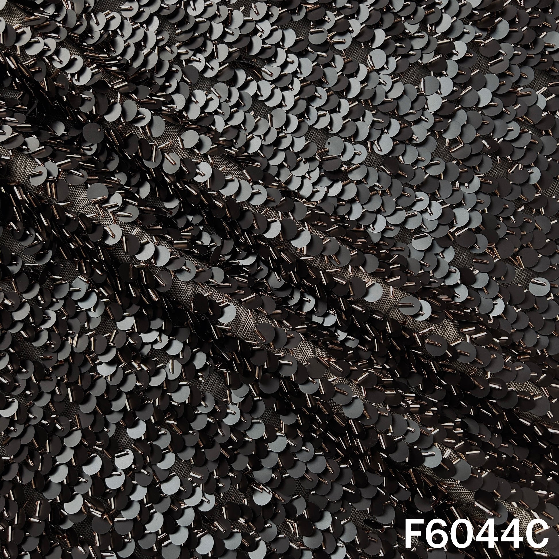 Cut Dana Sequins Embroidered Lycra Net Fabric - F6044