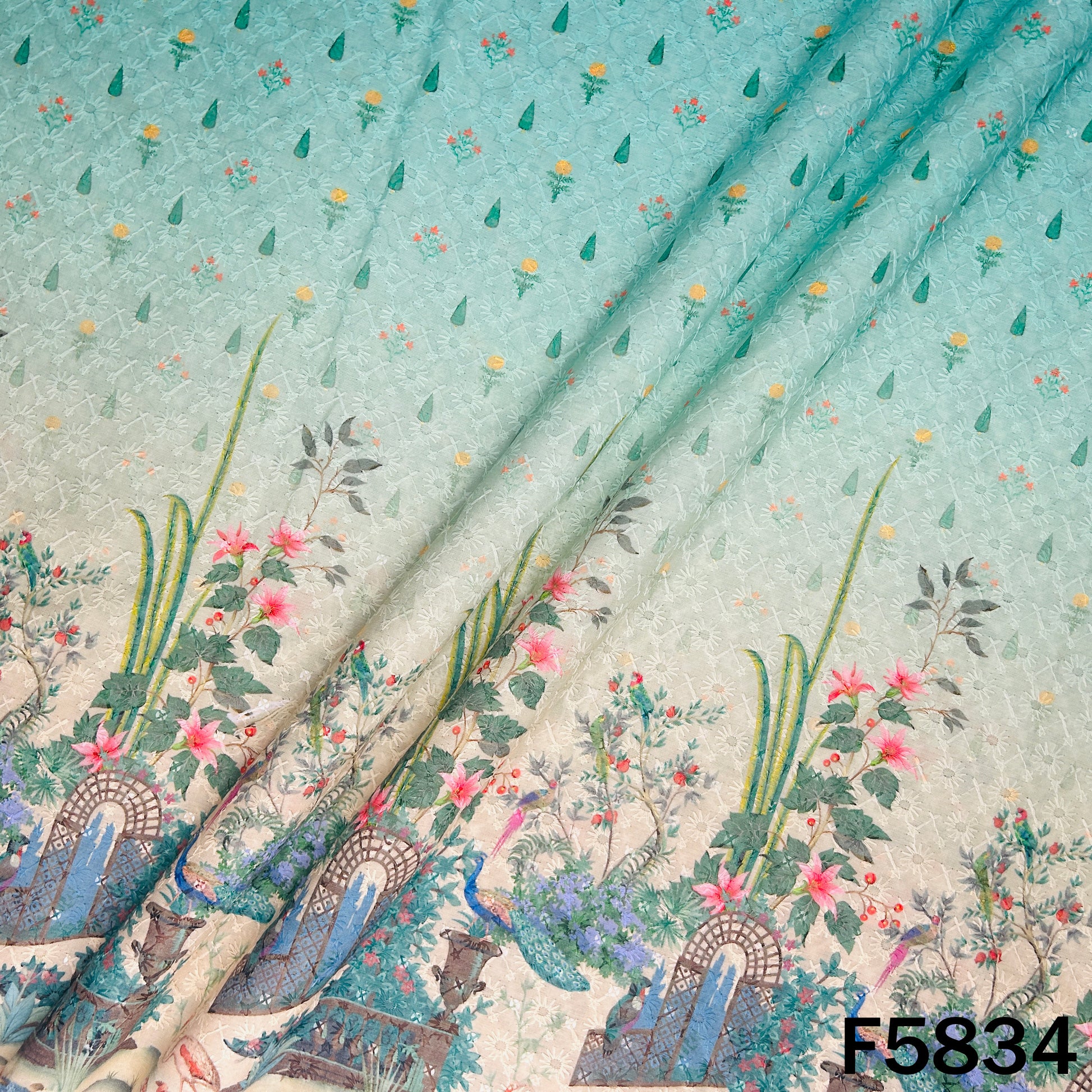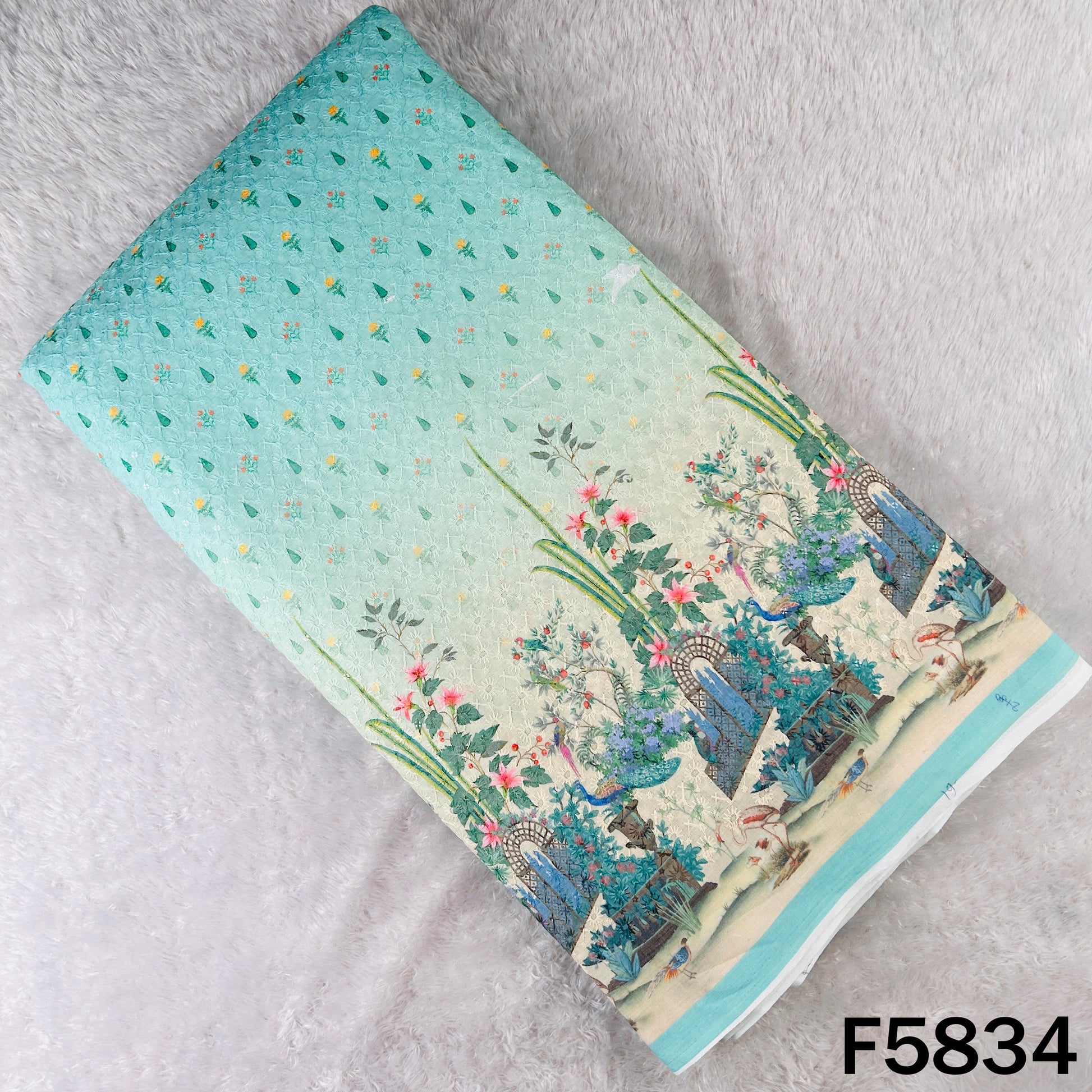 Digital Print Chikankari Sequins Work Cotton Fabric - F5834