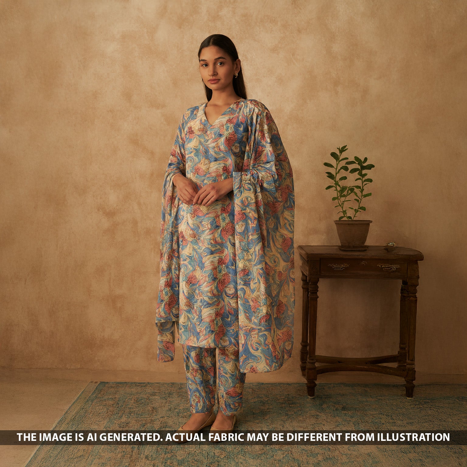 • This premium crepe fabric features an elegant digital print with flowing floral and abstract patterns in soothing pastel tones. Soft, lightweight, and slightly textured, it drapes beautifully—perfect for creating stylish dresses, blouses, and fusion wear. Ideal for both casual and festive outfits.