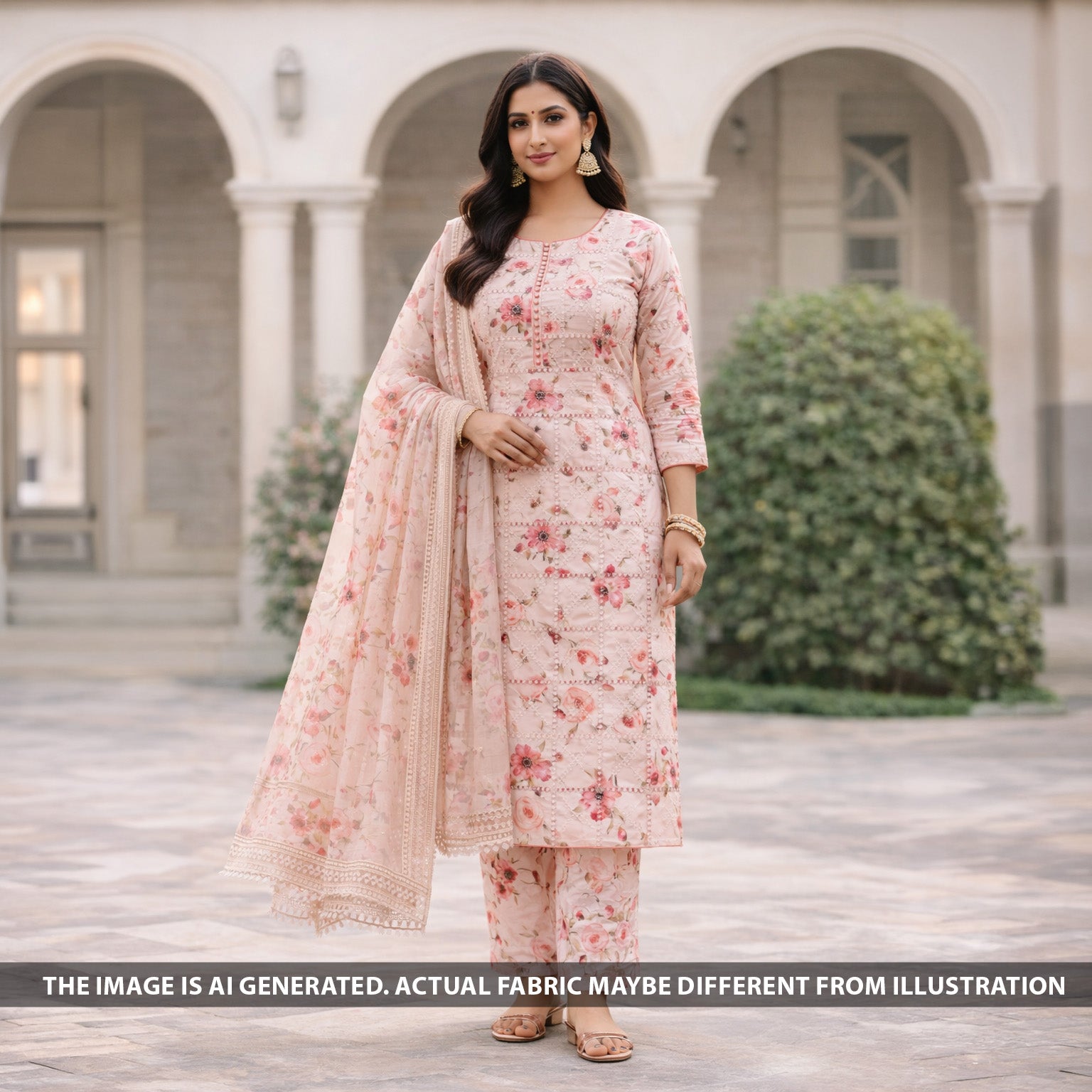 • Digital Print Hakoba Cambric Cotton Fabric set featuring coordinated top, bottom, and dupatta. Designed with elegant floral prints and delicate hakoba detailing, it offers a soft, breathable cambric cotton feel with a refined finish. Perfect for creating stylish, ready-to-wear suits with a graceful and cohesive look.