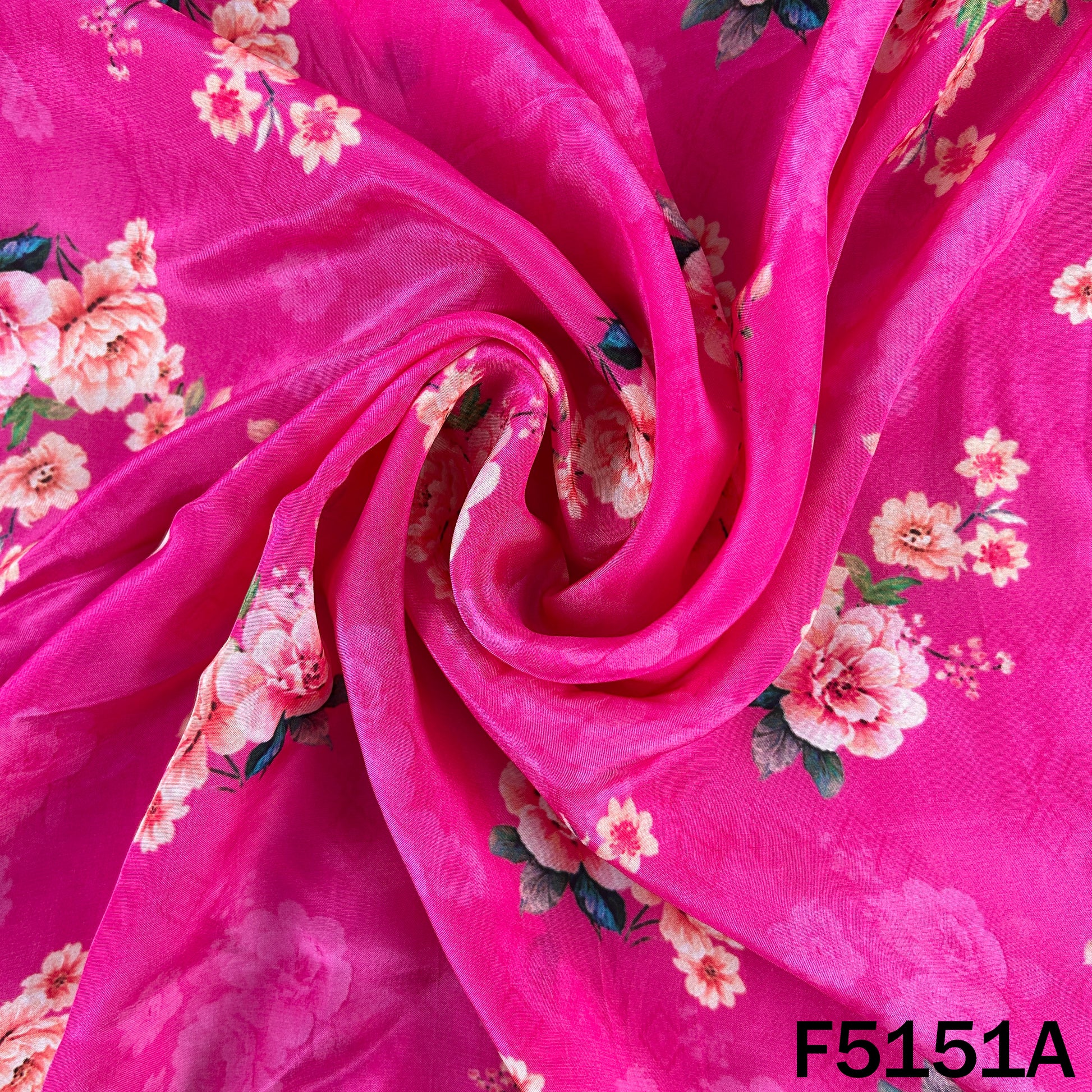 A smooth and elegant viscose crepe fabric featuring vibrant digital prints with a soft, flowing drape. Ideal for creating stylish dresses, kurtis, and contemporary fusion wear with a luxurious touch and eye-catching appeal.