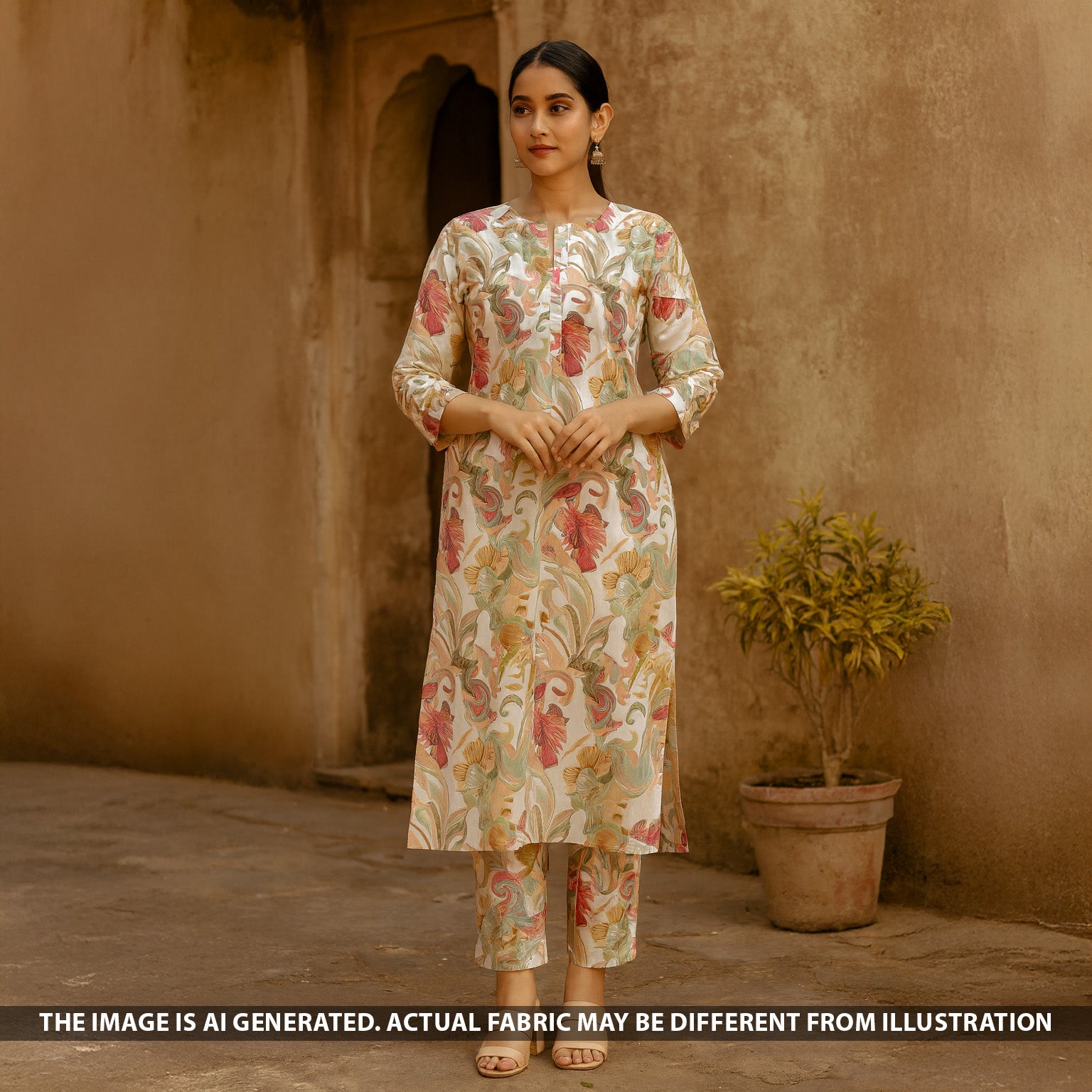 A premium viscose crepe fabric featuring artistic digital prints and a smooth, flowy texture. Perfect for crafting elegant dresses, kurtis, co-ord sets, and contemporary outfits with a refined, fashionable appeal.