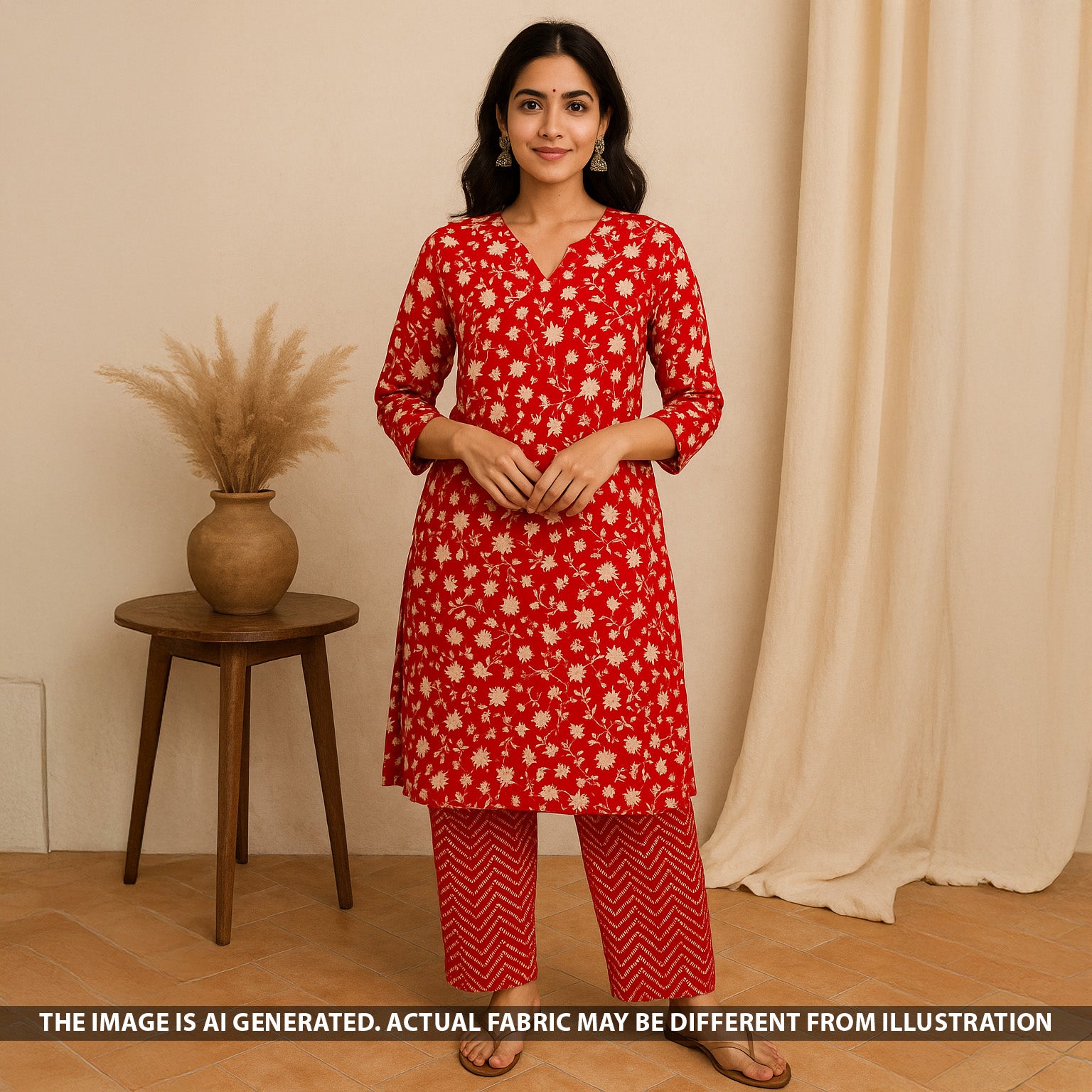 • Charming Digital Print Viscose Crepe fabric featuring a bold red base adorned with delicate white floral motifs. The soft, fluid texture offers excellent drape, making it ideal for elegant kurtas, sarees, and contemporary silhouettes.