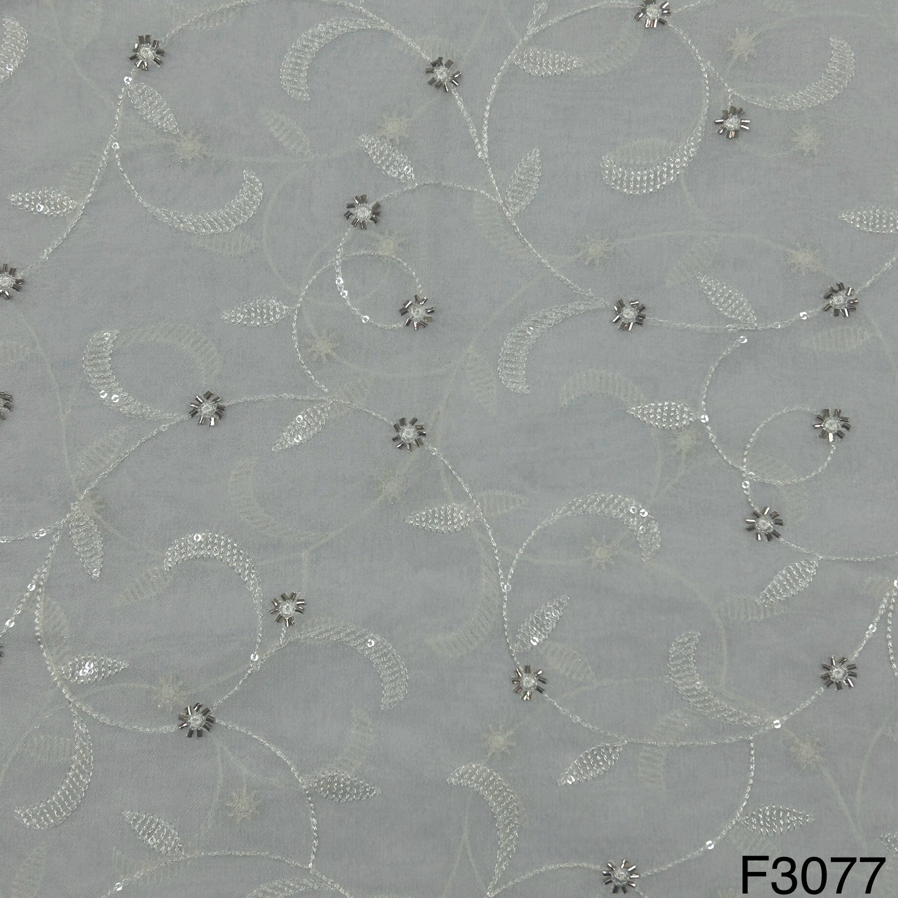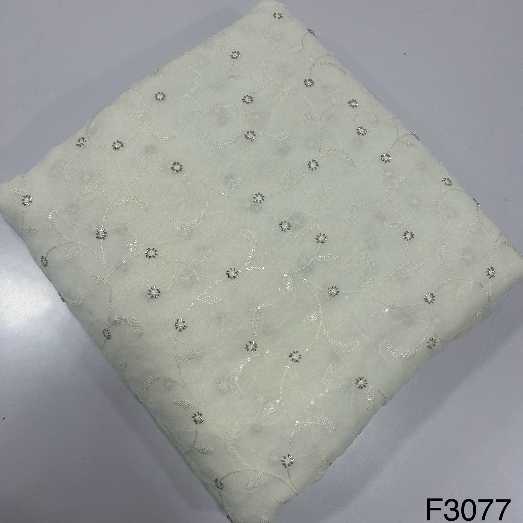 Dyeable Cut Dana work Thread sequins Embroidered Georgette Fabric-F3077