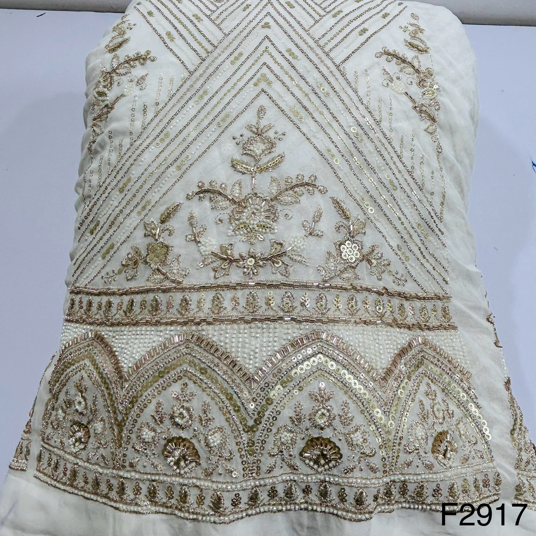 Dyeable Cut Dana Zari Sequins Embroidered Georgette Kali Fabric-F2917