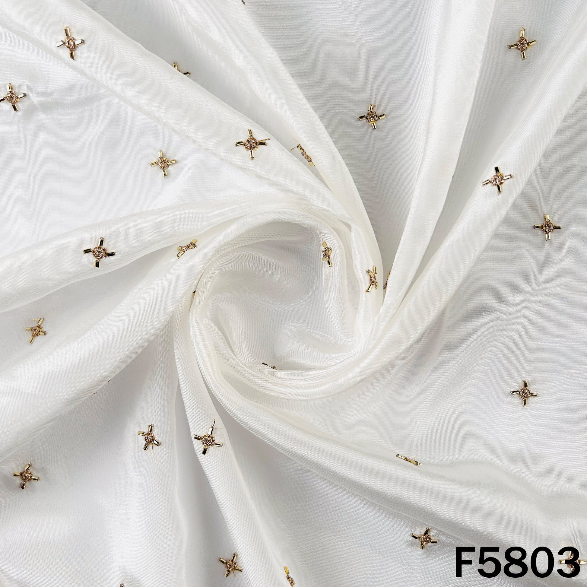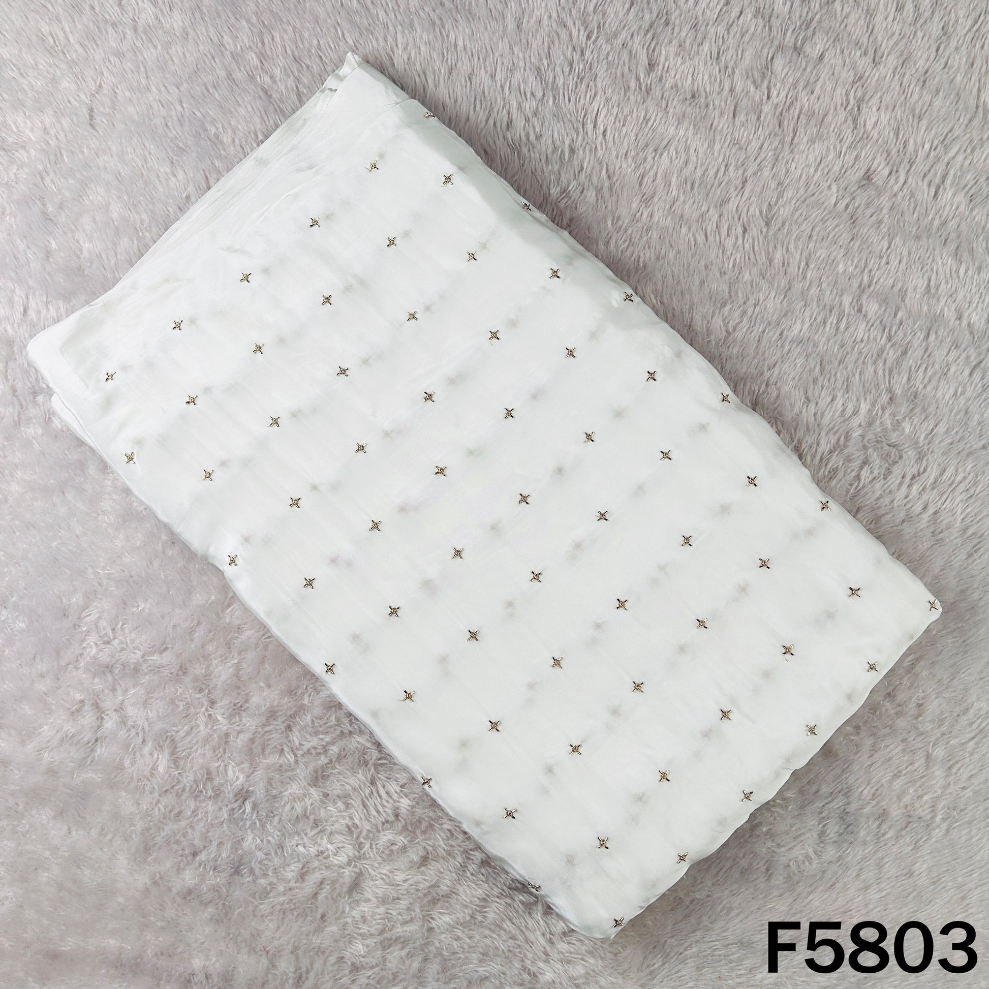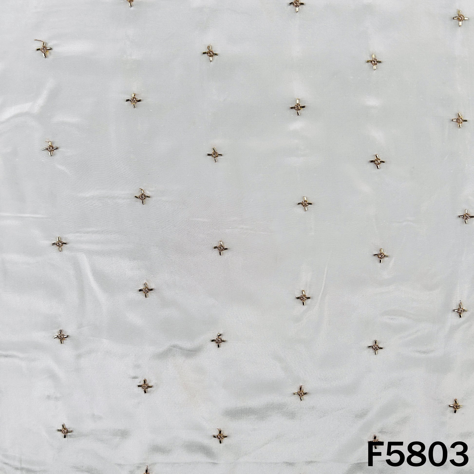 Elegant Dyeable Cut Dana Zari Work Crepe Fabric featuring delicate scattered zari buti work on a smooth, flowy base. Perfect for custom dyeing and ideal for suits, sarees, lehengas, and festive or occasion wear.