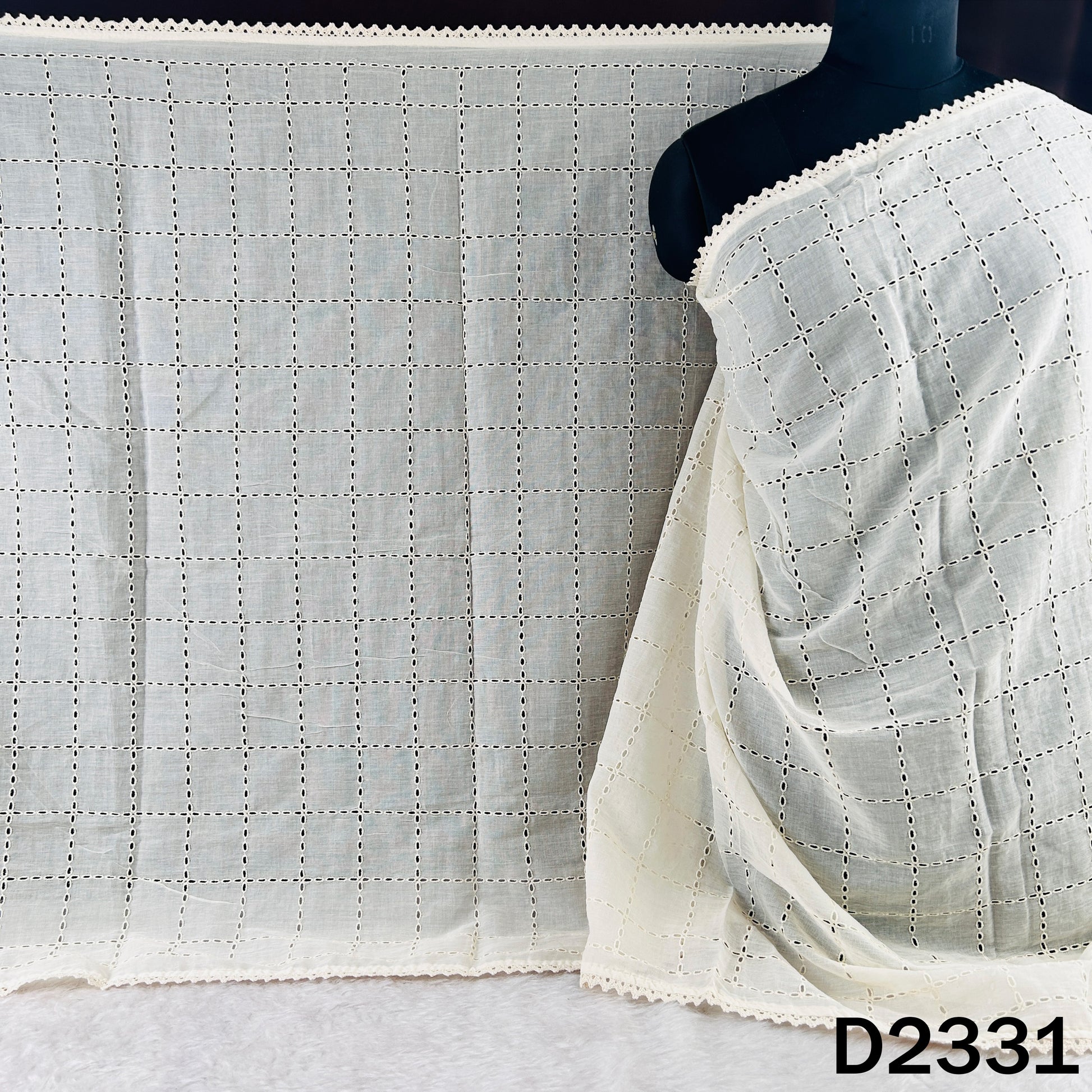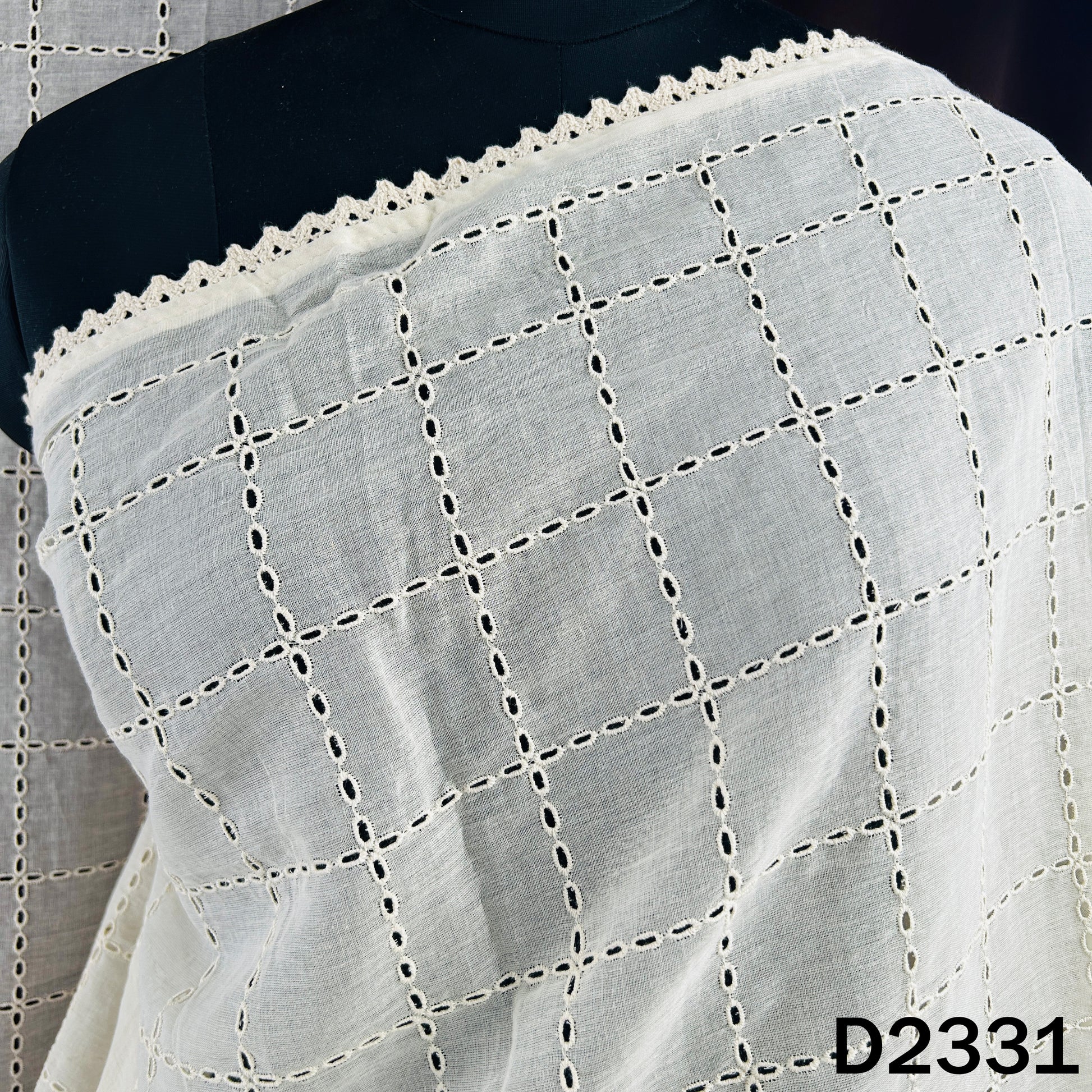 • Elegant kora cotton dupatta featuring delicate Hakoba cutwork in a graceful grid pattern with soft lace edging. Lightweight, airy, and beautifully detailed for a subtle ethnic look.