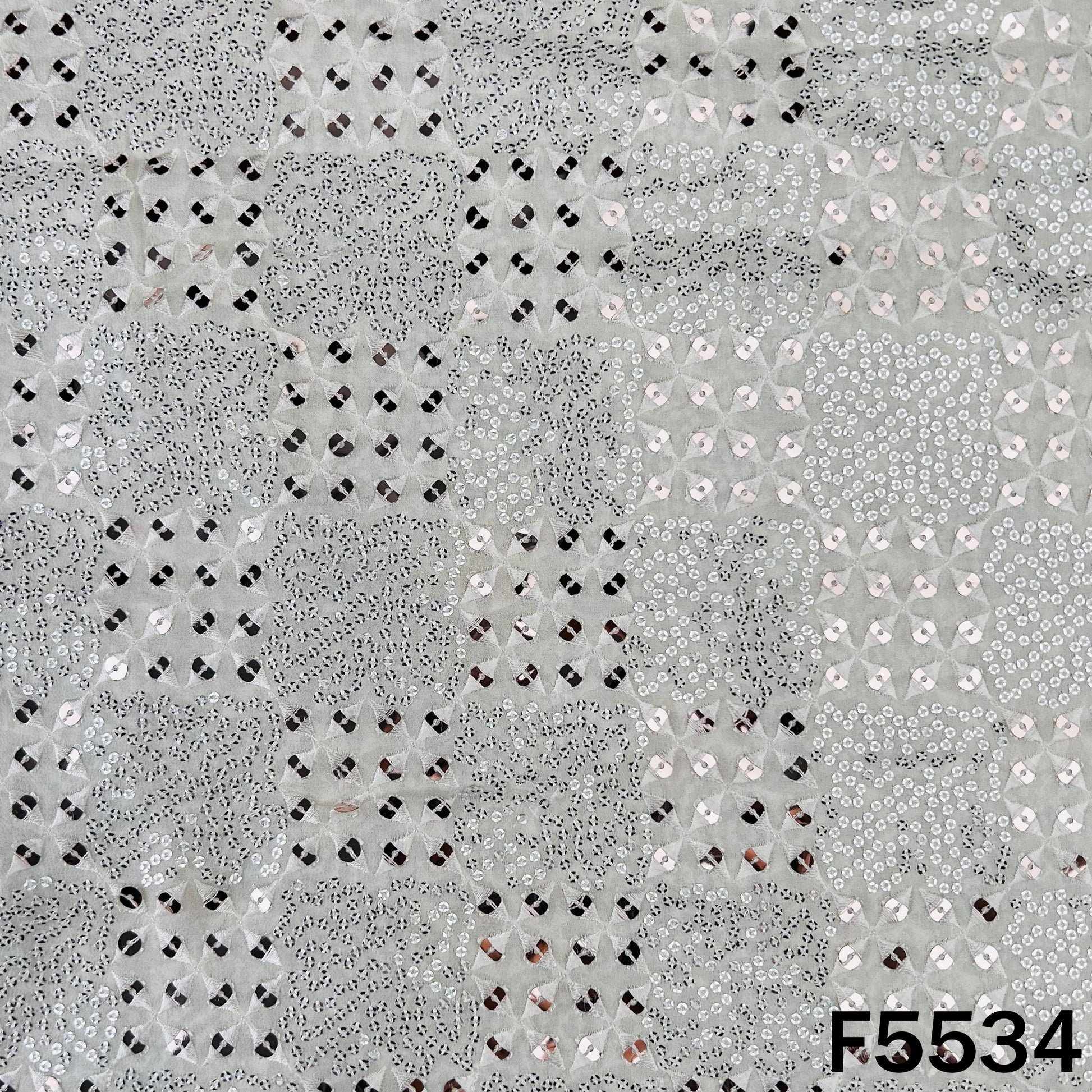 Dyeable Thread Sequins Embroidered Faux Mirror Work Georgette Fabric - F5534