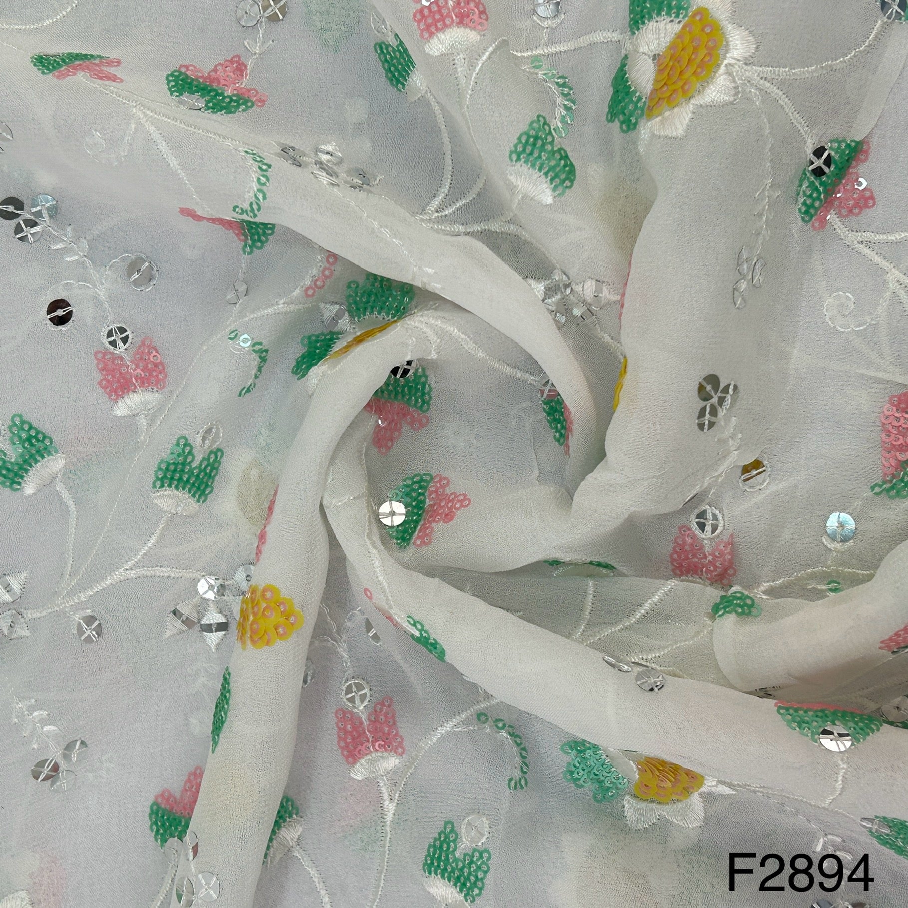 Dyeable Thread Sequins embroidered Georgette Fabric- F2894