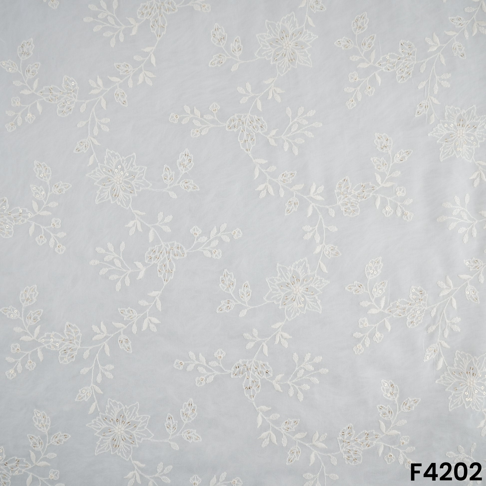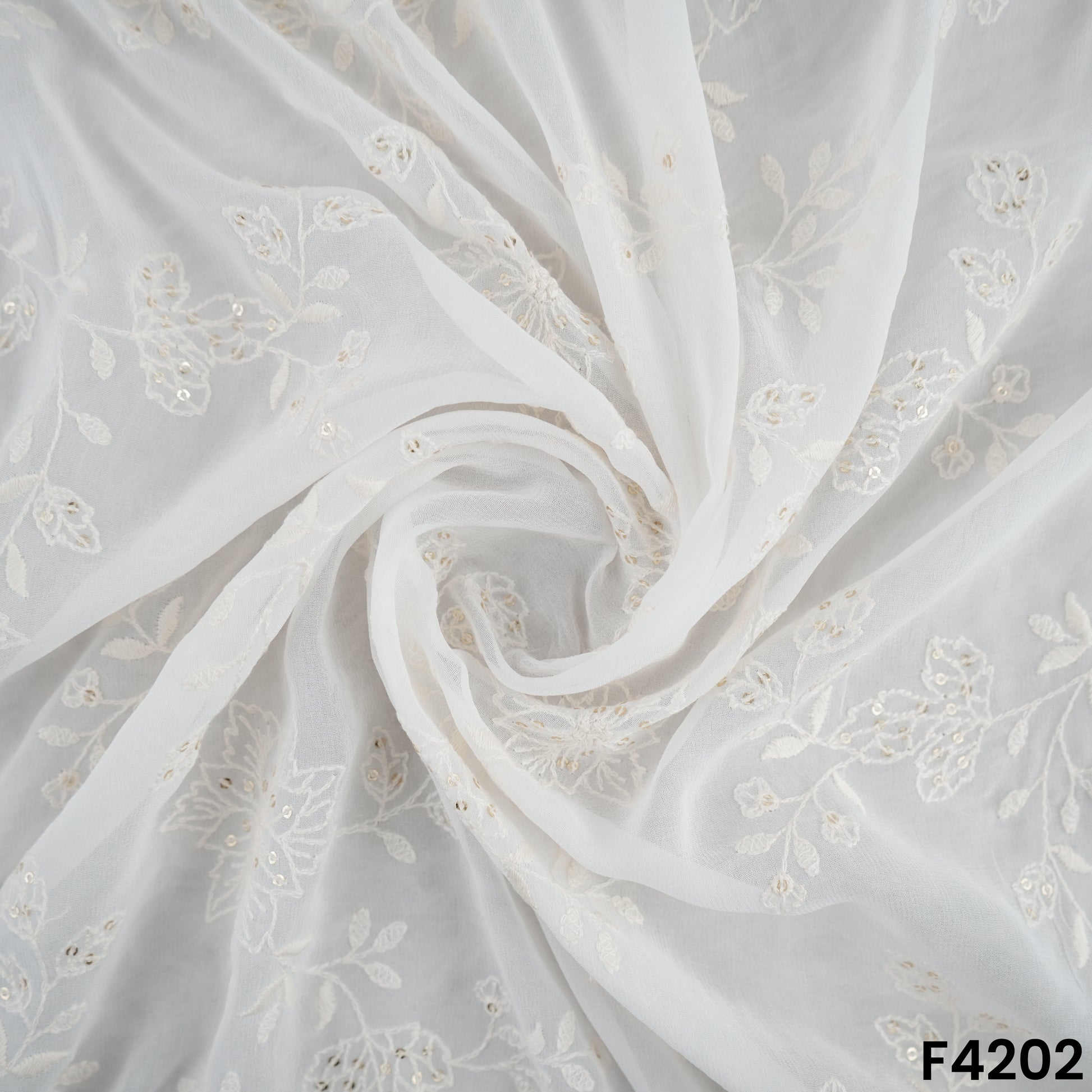 Dyeable Thread Sequins Embroidered Georgette Fabric- F4202