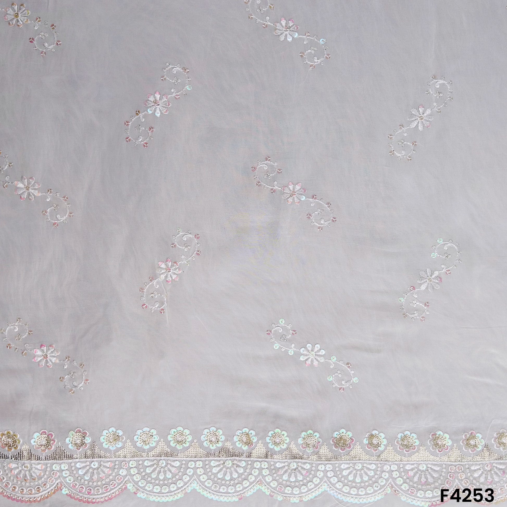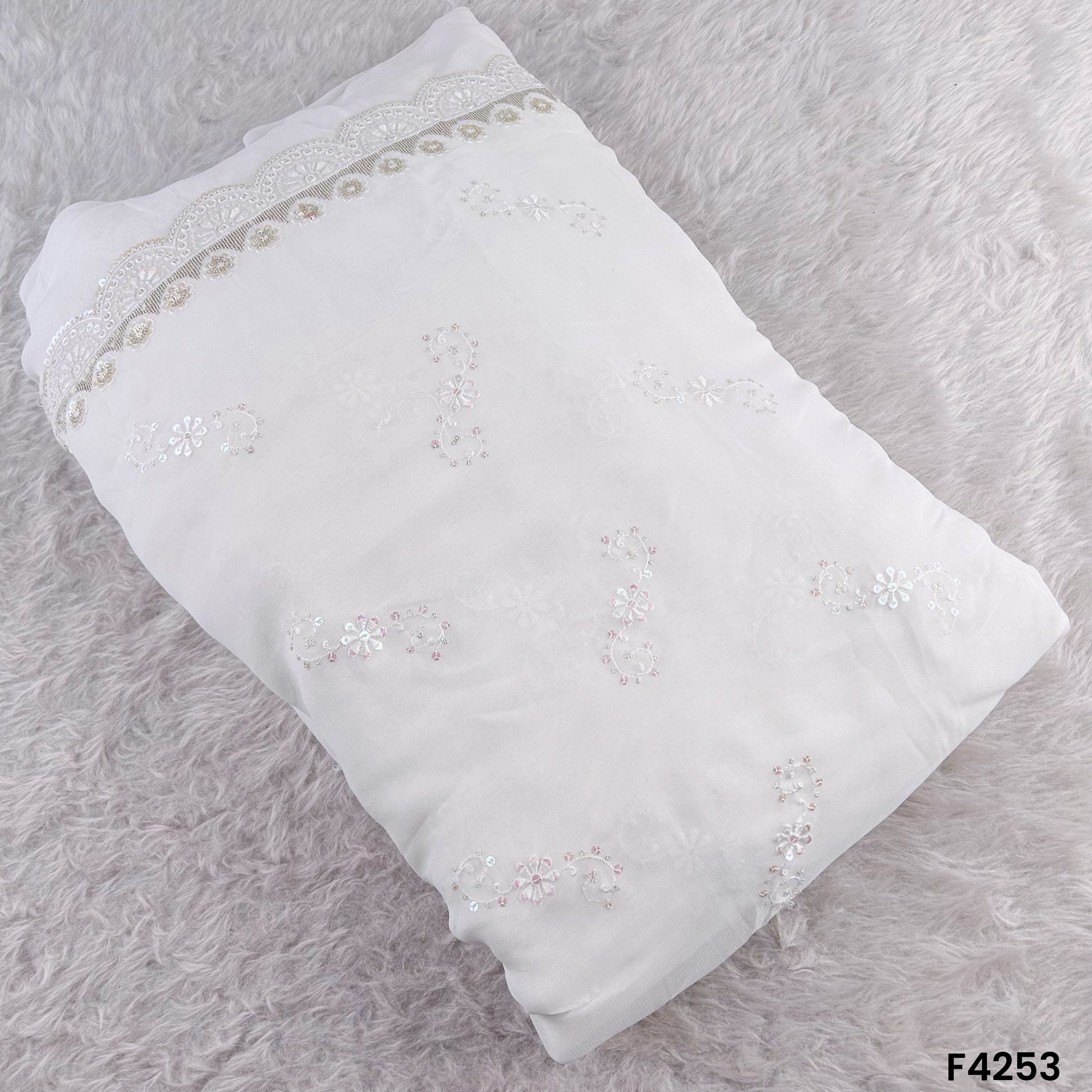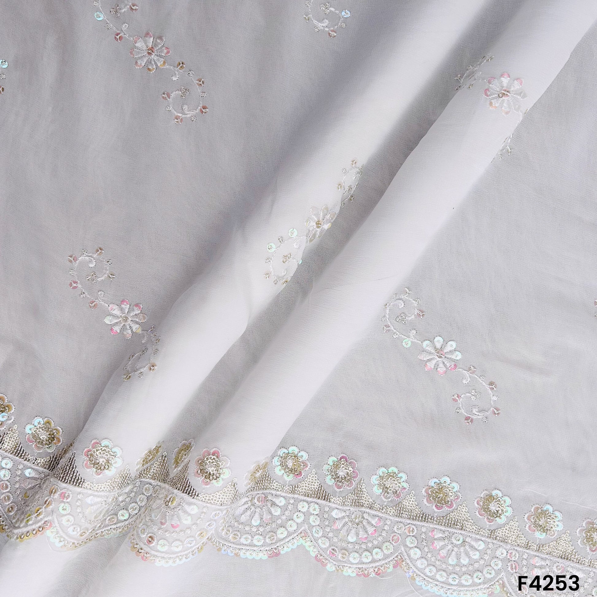 Dyeable Thread Sequins Embroidered Georgette Fabric- F4253