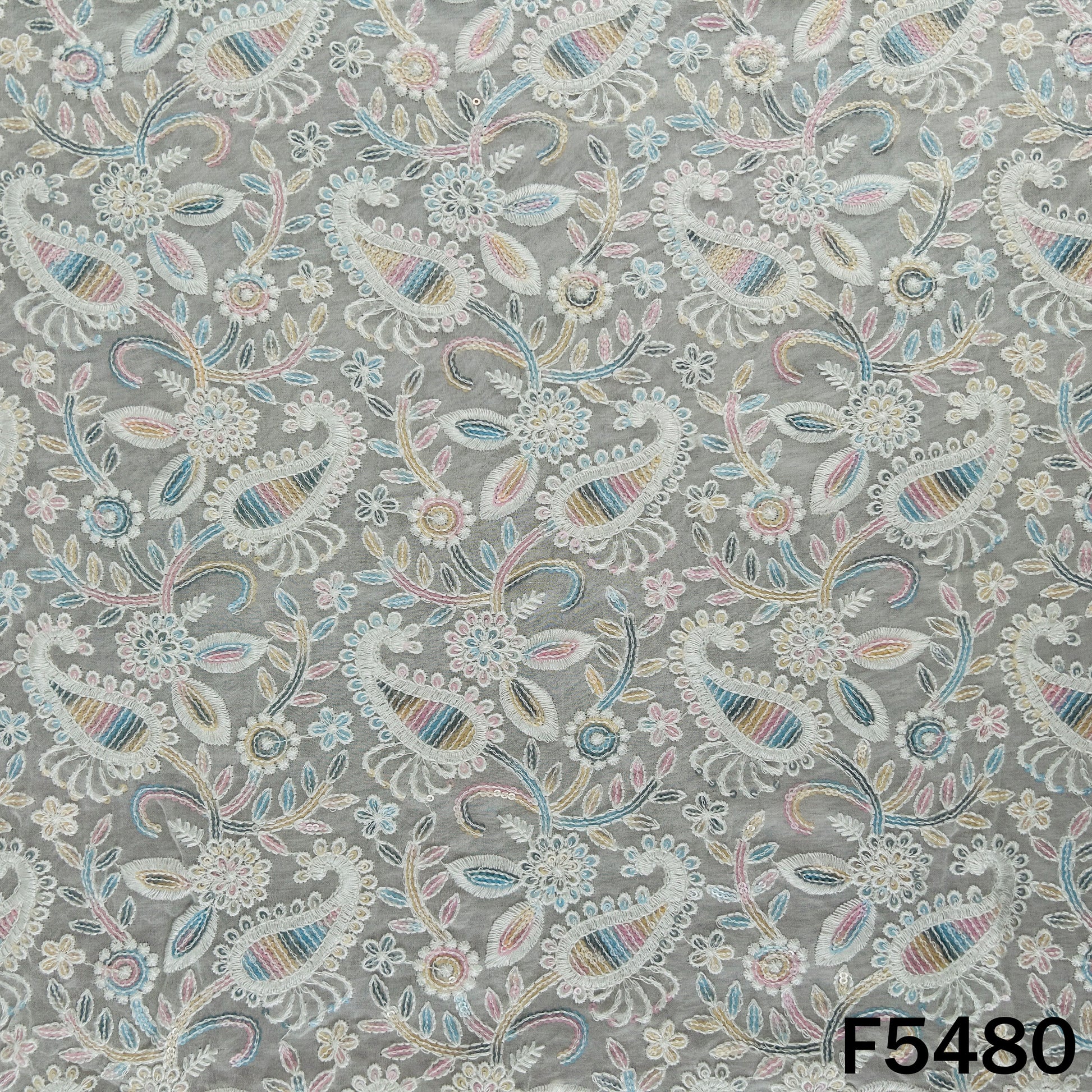 Dyeable Thread Sequins Embroidered Georgette Fabric - F5480
