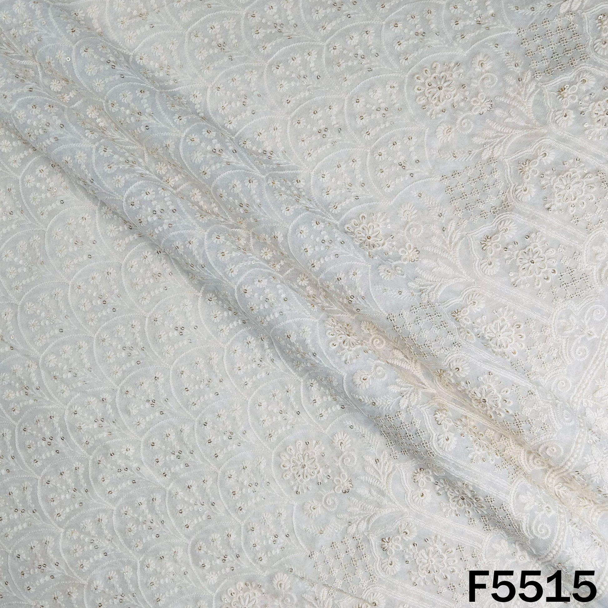 Dyeable Thread Sequins Embroidered Georgette Fabric - F5515