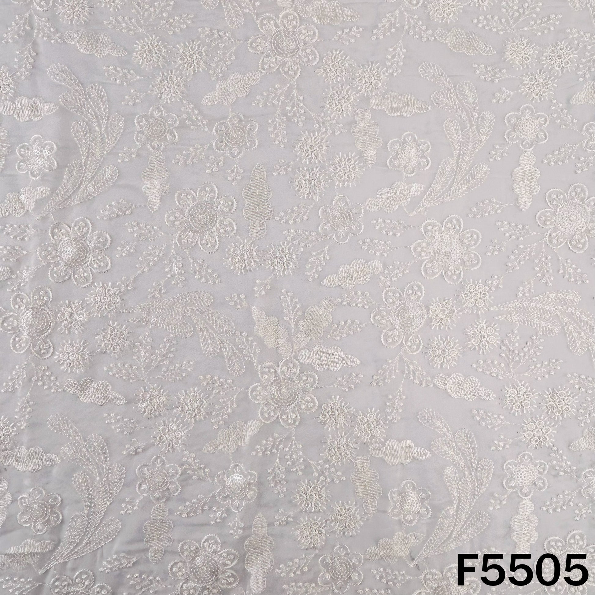 • A delicate dyeable organza fabric adorned with fine thread and subtle sequin embroidery, featuring an elegant all-over floral pattern. Lightweight and sheer with a soft shimmer, it is ideal for creating graceful festive, bridal, and occasion wear ensembles.