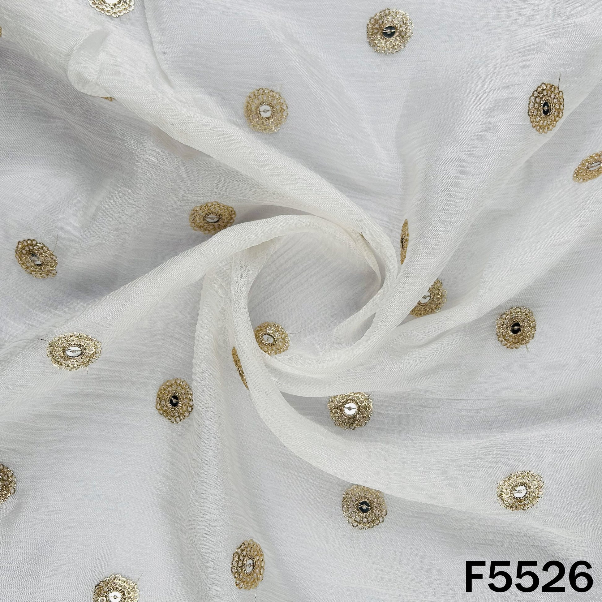 Dyeable Zari Sequins Embroidered Chinnon Chiffon Fabric - F5526