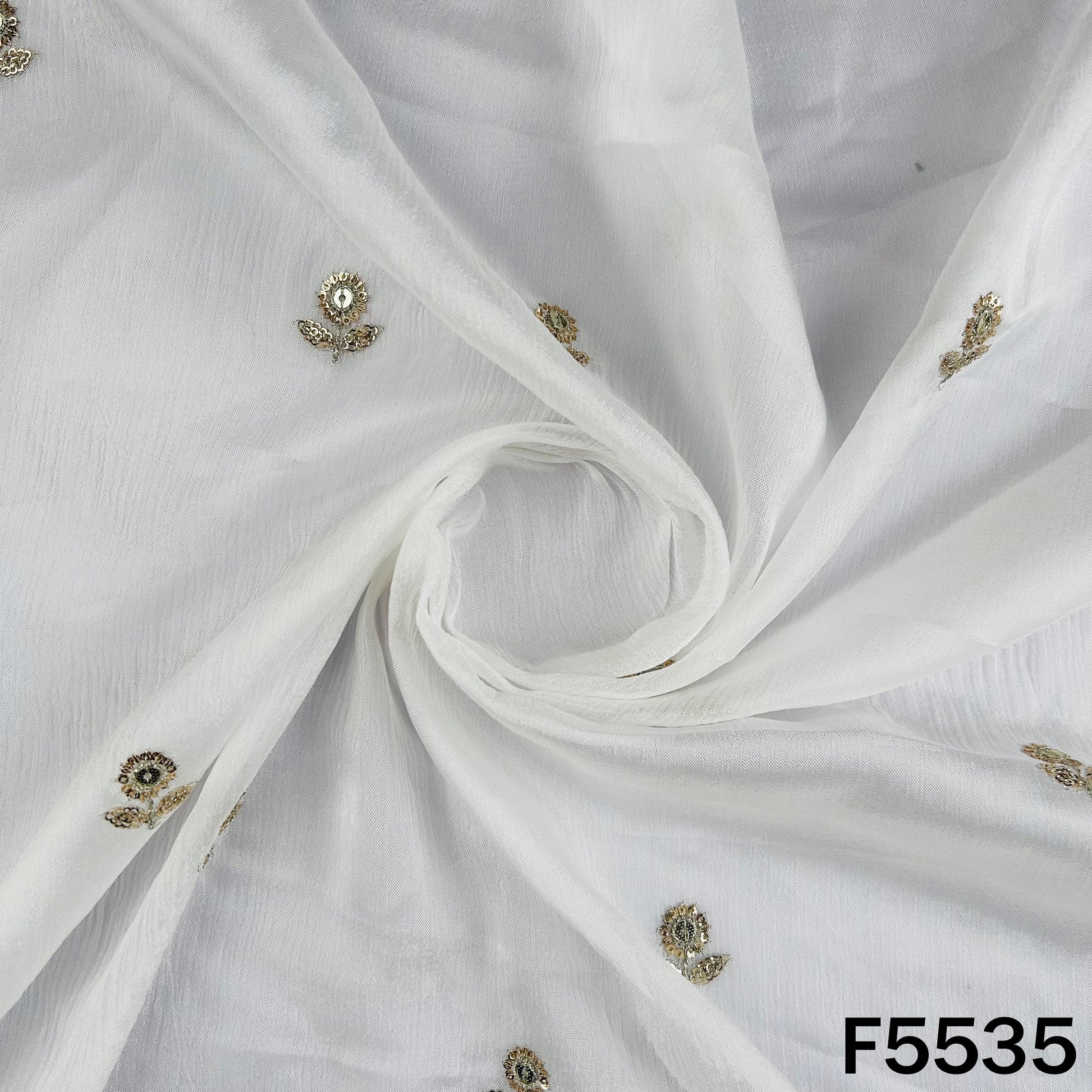 Dyeable Zari Sequins Embroidered Chinnon Chiffon Fabric - F5535