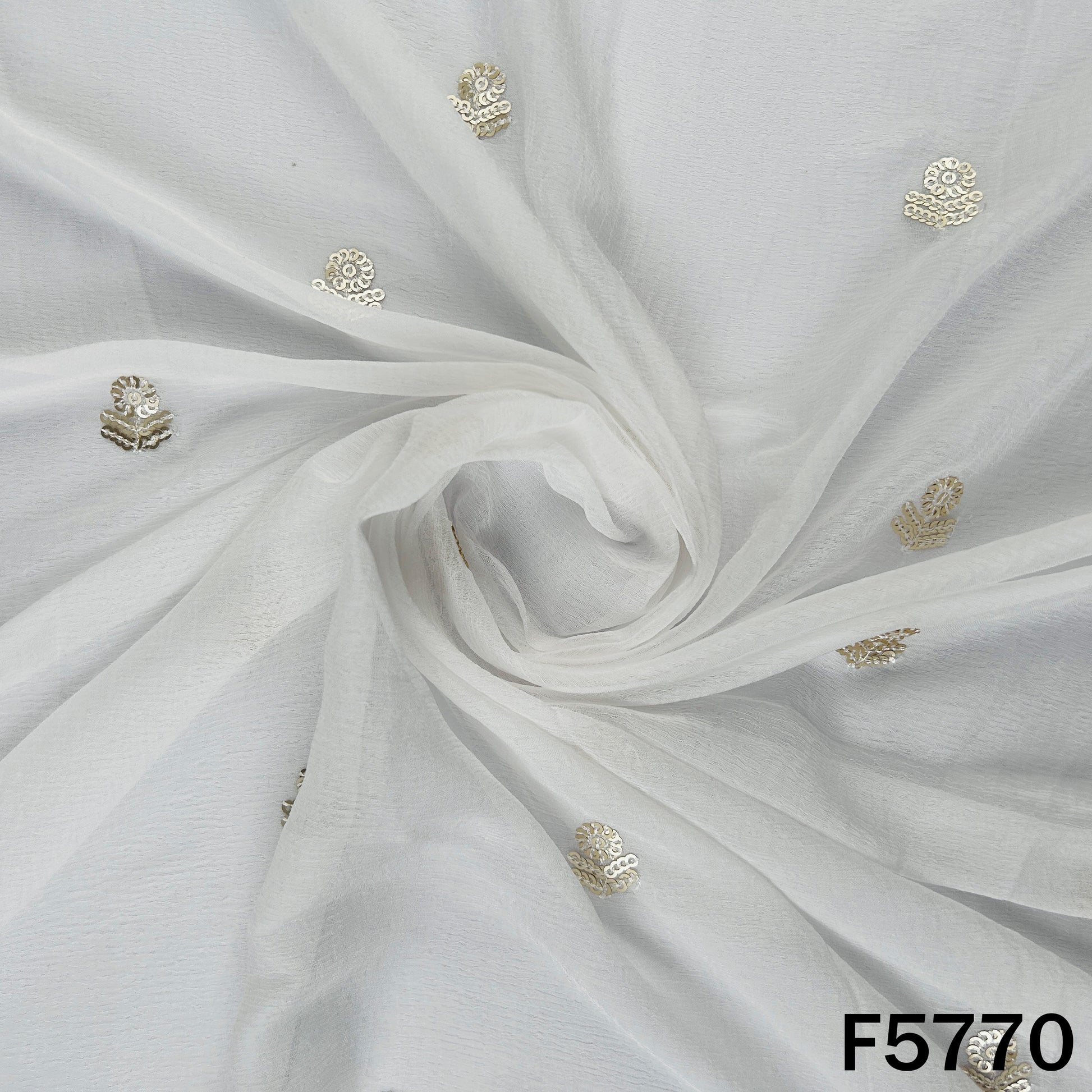 Dyeable Zari Sequins Work Chinnon Fabric - F5770