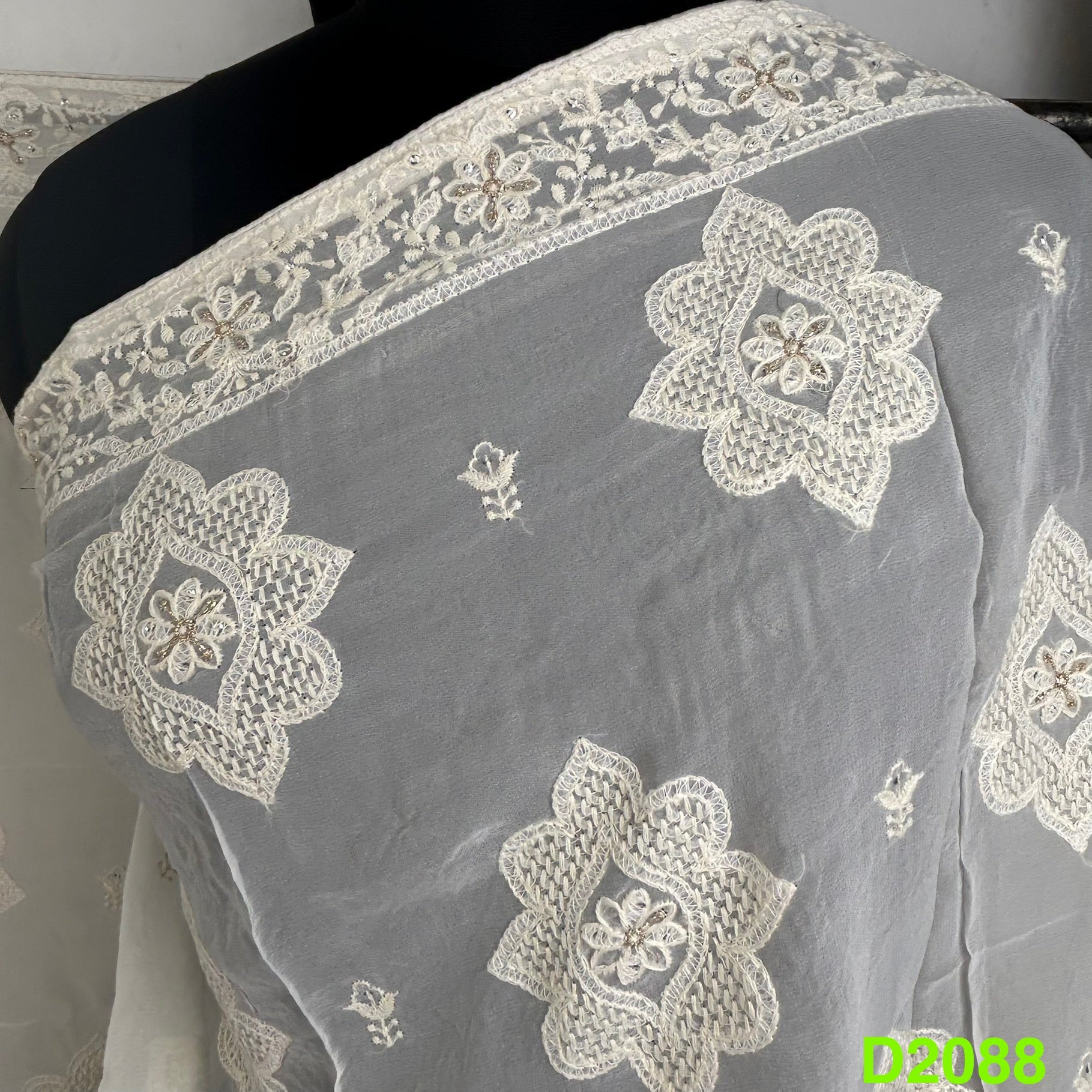 Dyeable Zari Thread Sequins Embroidered Georgette Dupatta-D2088