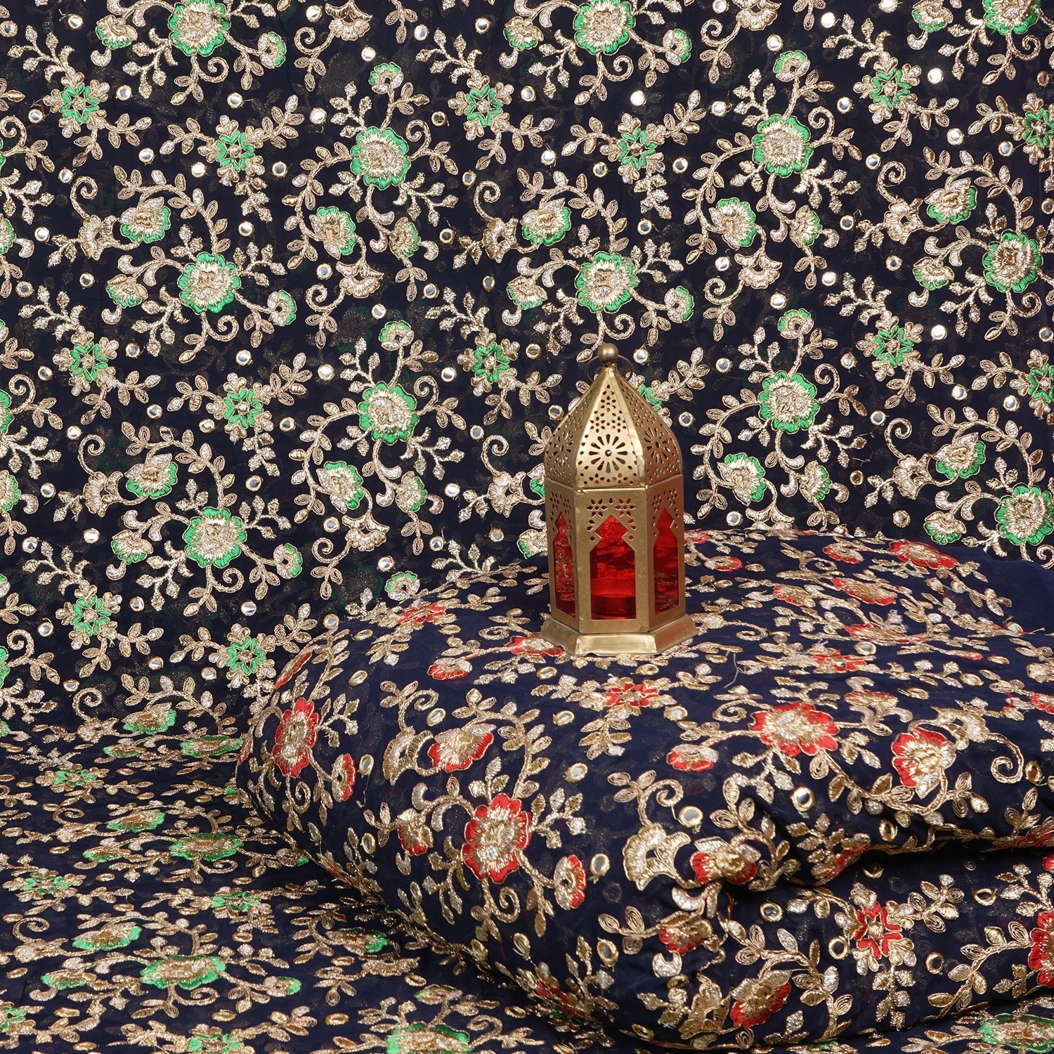 Embroidered Faux Mirror Georgette Fabric-FR3421