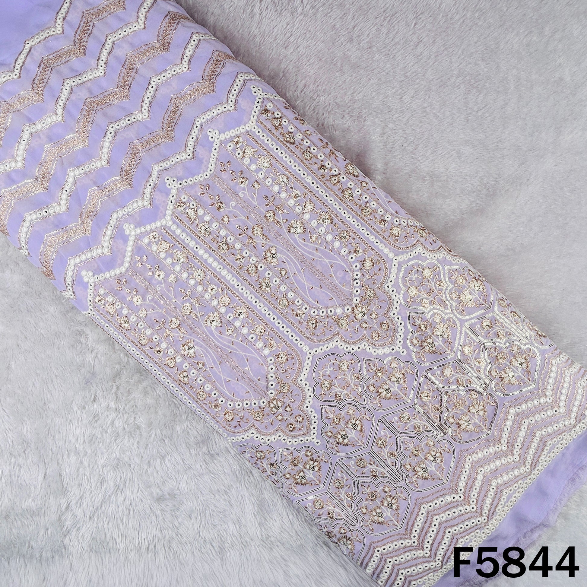 Faux Mirror Thread Zari Sequins Embroidered Georgette Fabric - F5844