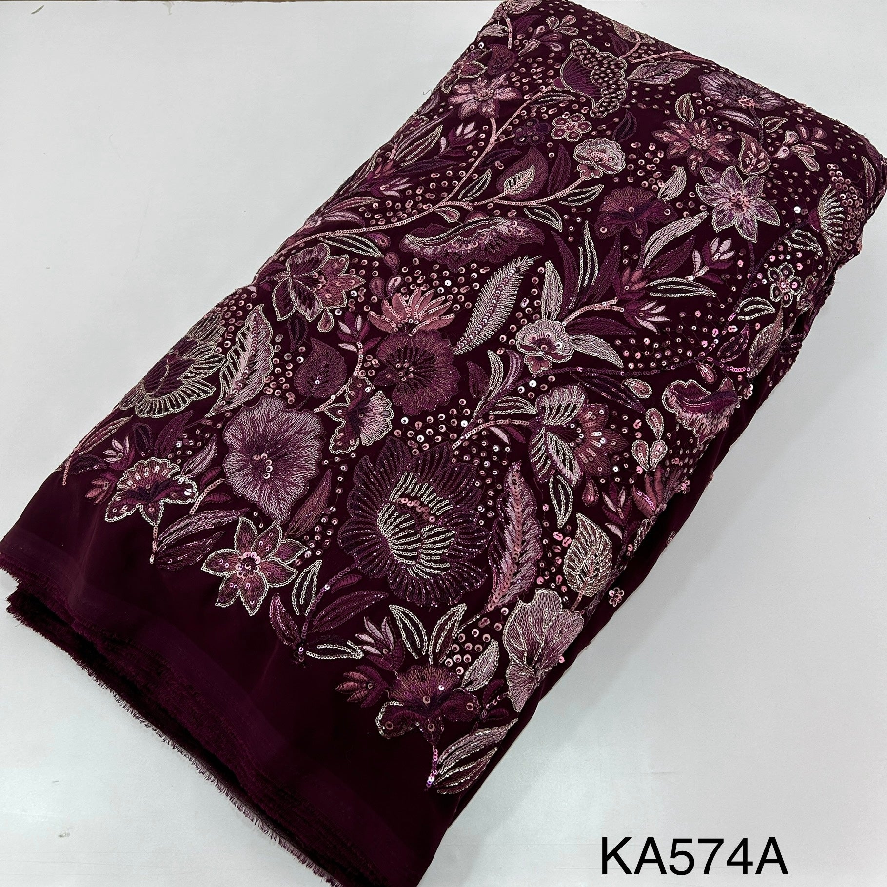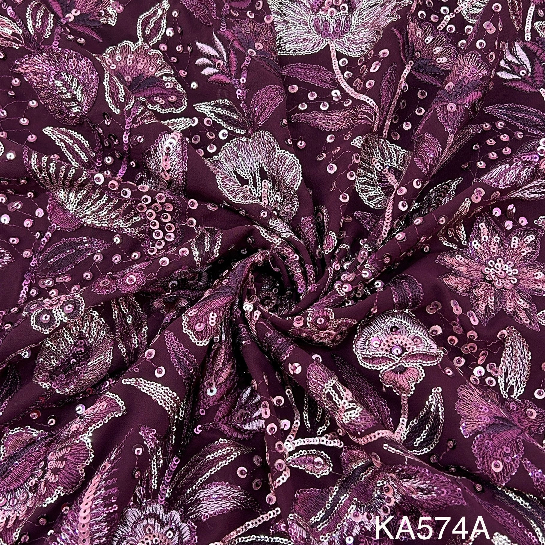 Thread Embroidered Sequins Georgette Fabric-KA574
