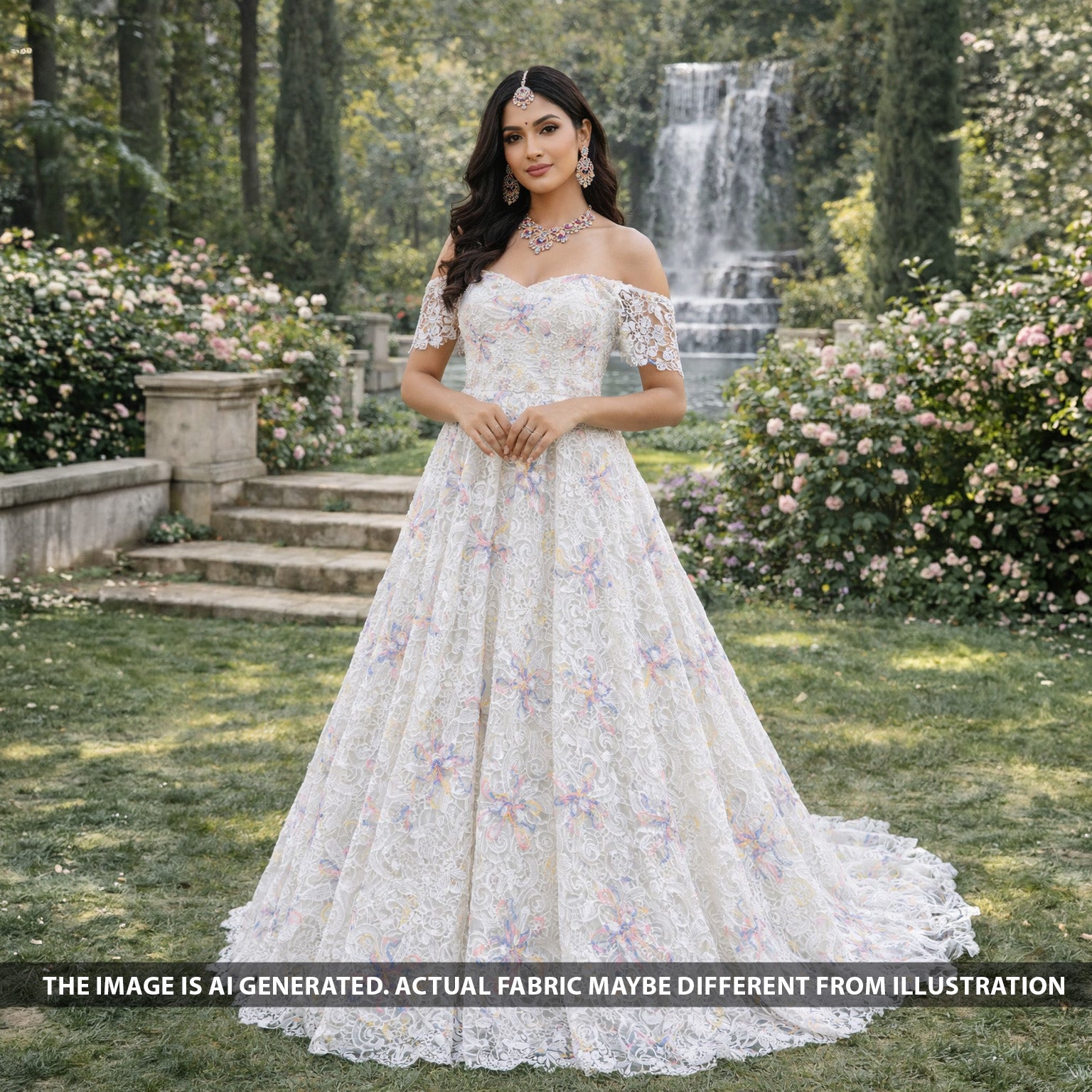 • Premium imported organza fabric featuring intricate cut work embroidery with elegant multi-tone floral detailing. Lightweight, sheer, and beautifully textured for a soft yet luxurious designer appeal.
