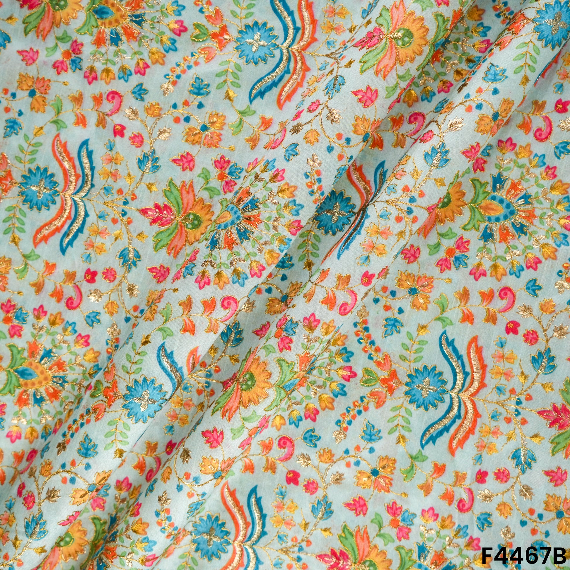 Positional Print Semi Dupion Silk Fabric-F4467