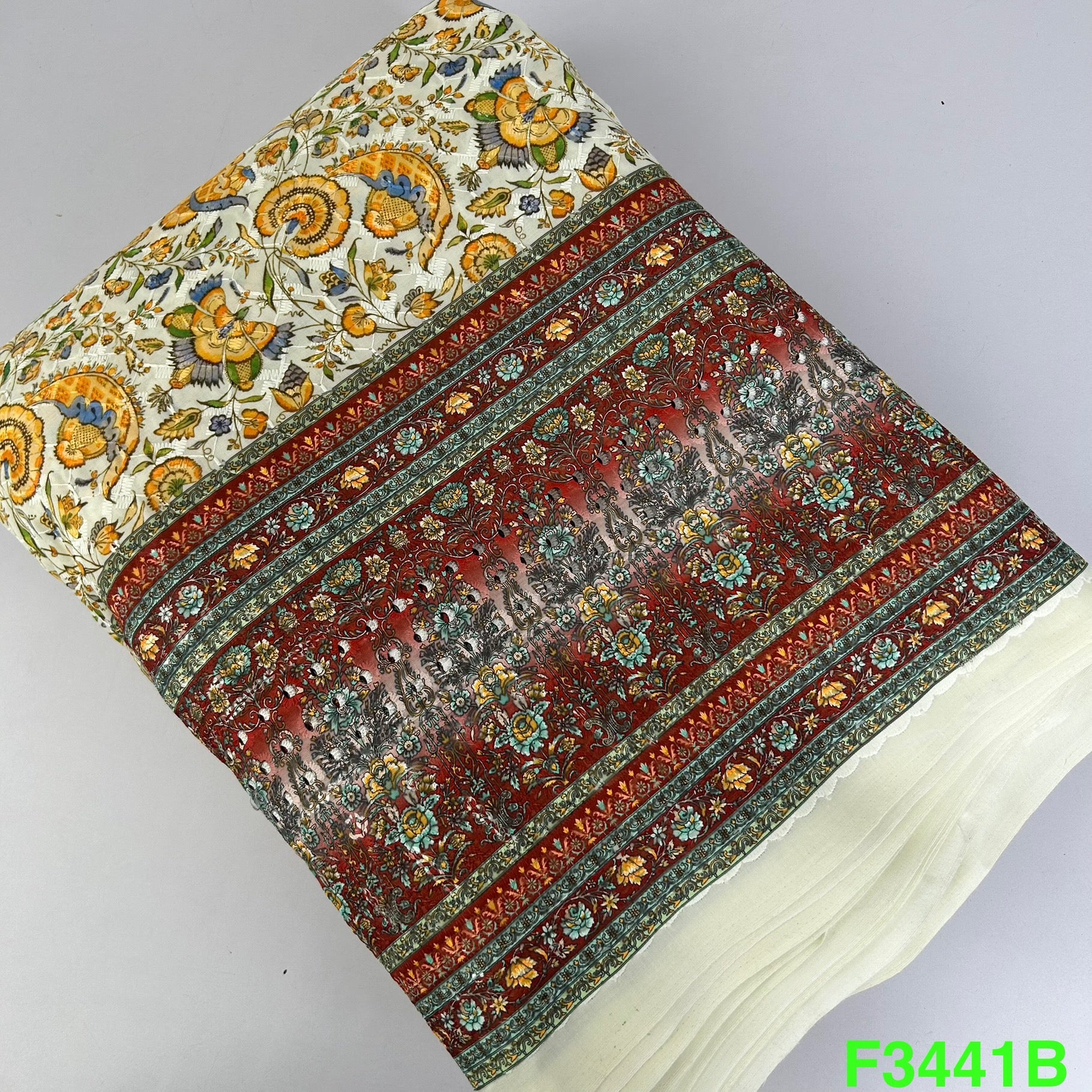 Positional Print Thread Embroidered Cotton Fabric-F3441
