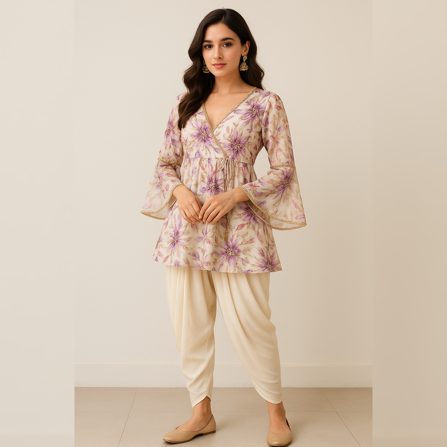 • Fabric Name :- Positional Print Zari Embroidered Crepe