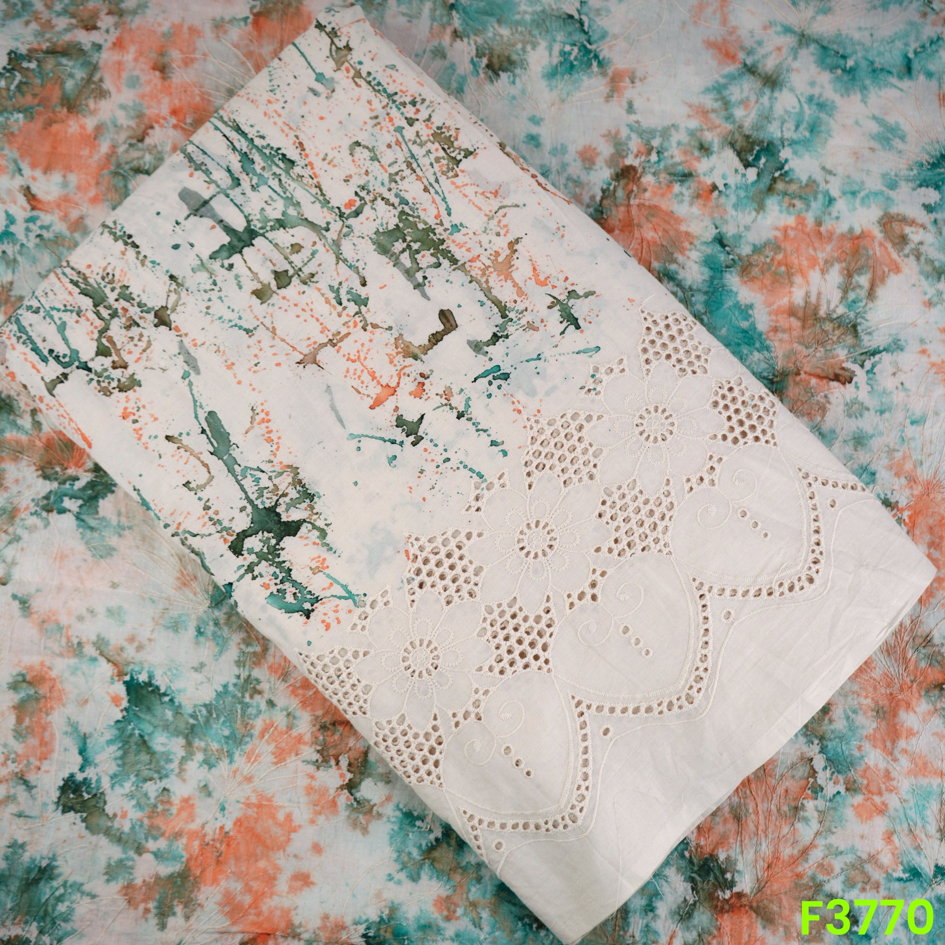 Printed Thread Embroidered Cambric Cotton Fabric-3770