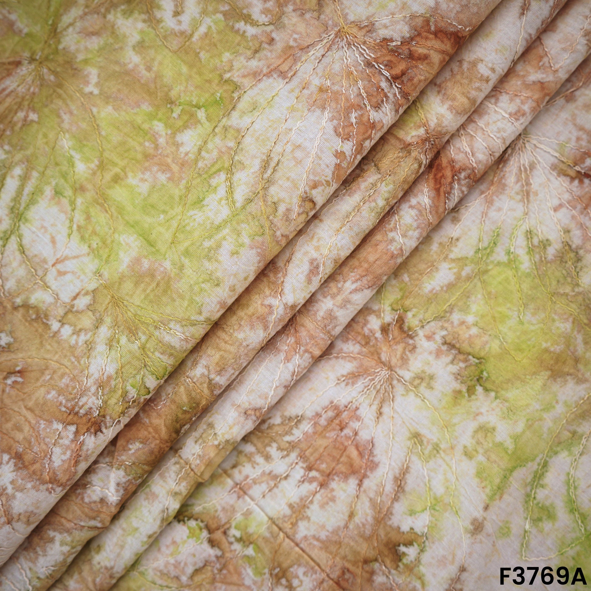 Printed Thread Embroidered Cambric Cotton Fabric-F3769
