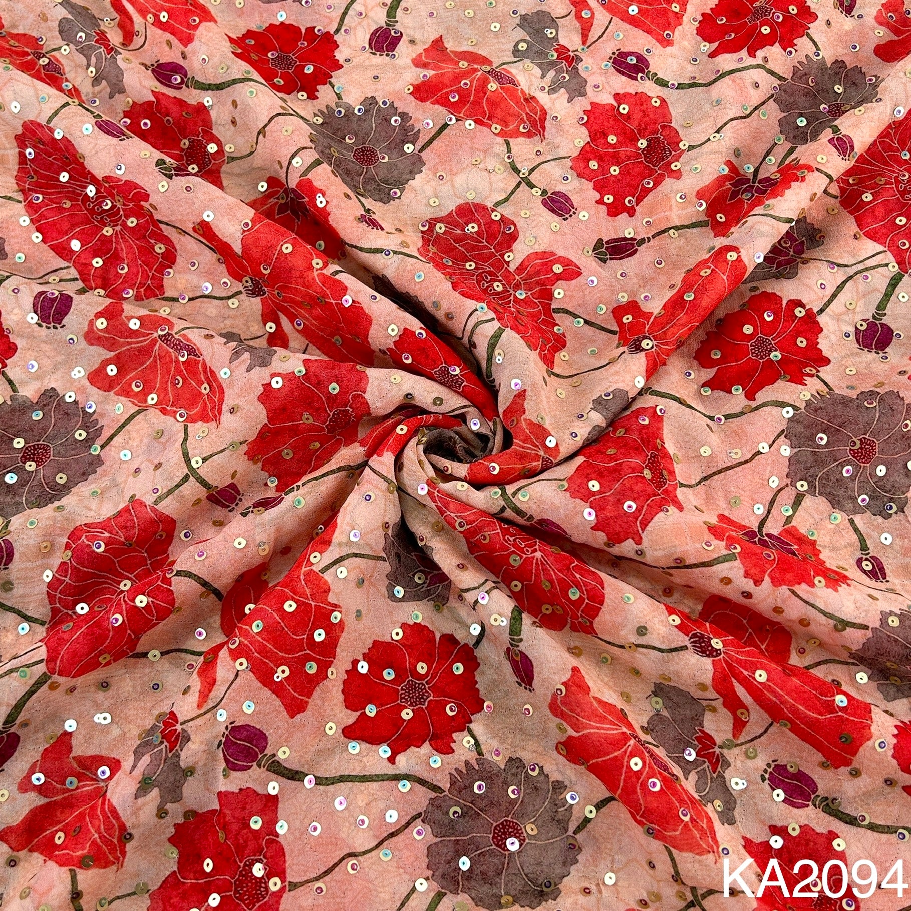 Printed Sequins Georgette Fabric-KA2094