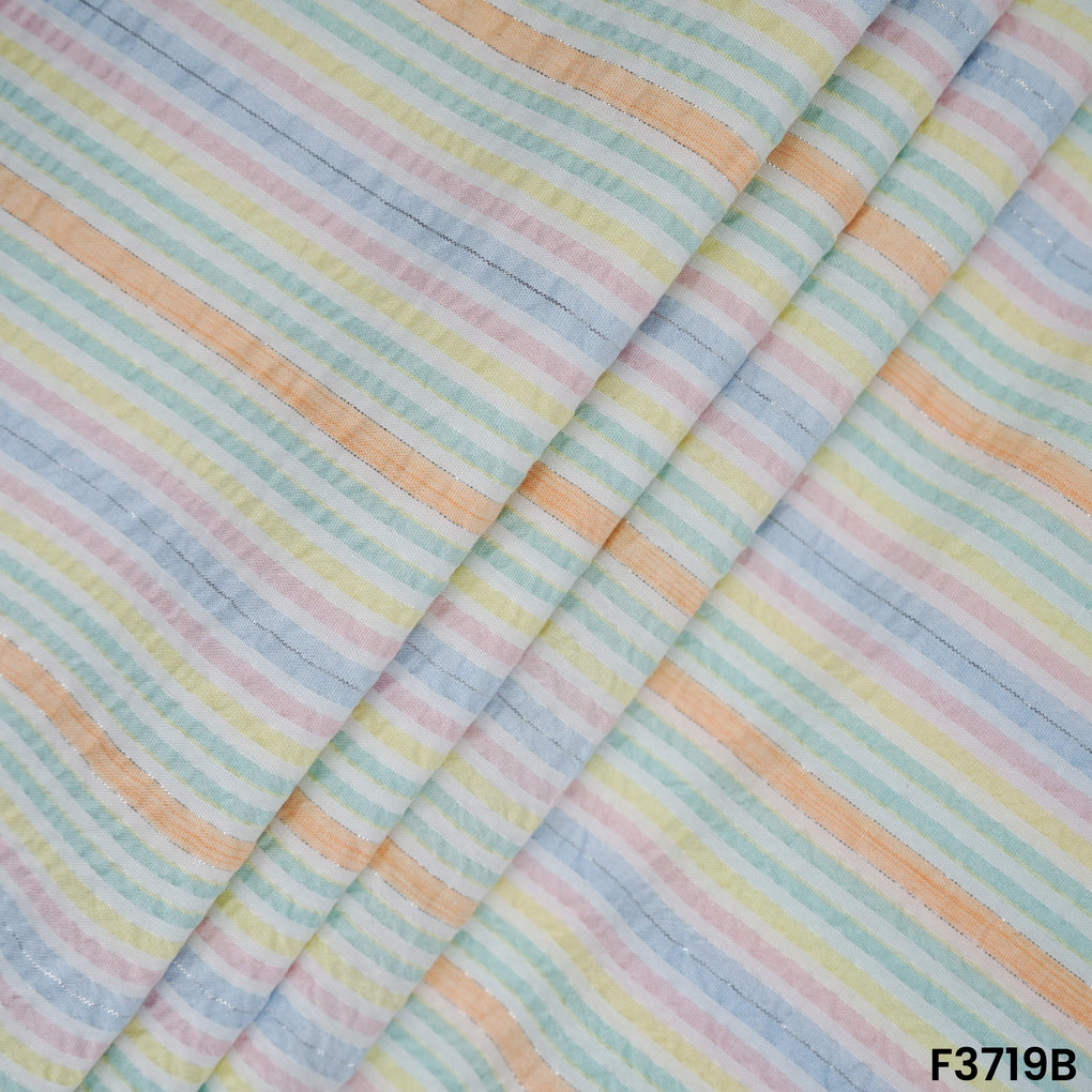Strips Printed Lurex Seer Sakkar Cotton Fabric-3719