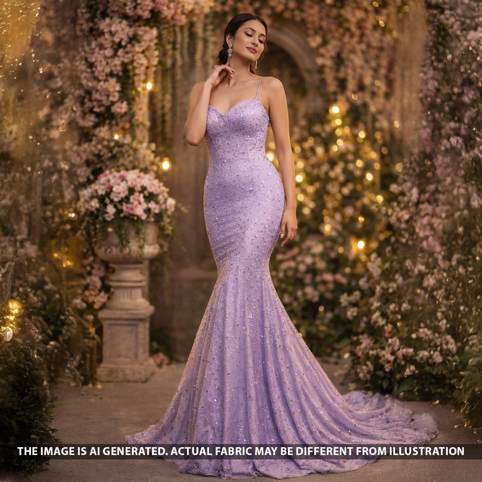 • Premium Armani satin embellished with fine Swarovski work, offering a smooth finish and subtle sparkle—perfect for elegant party and evening wear creations.