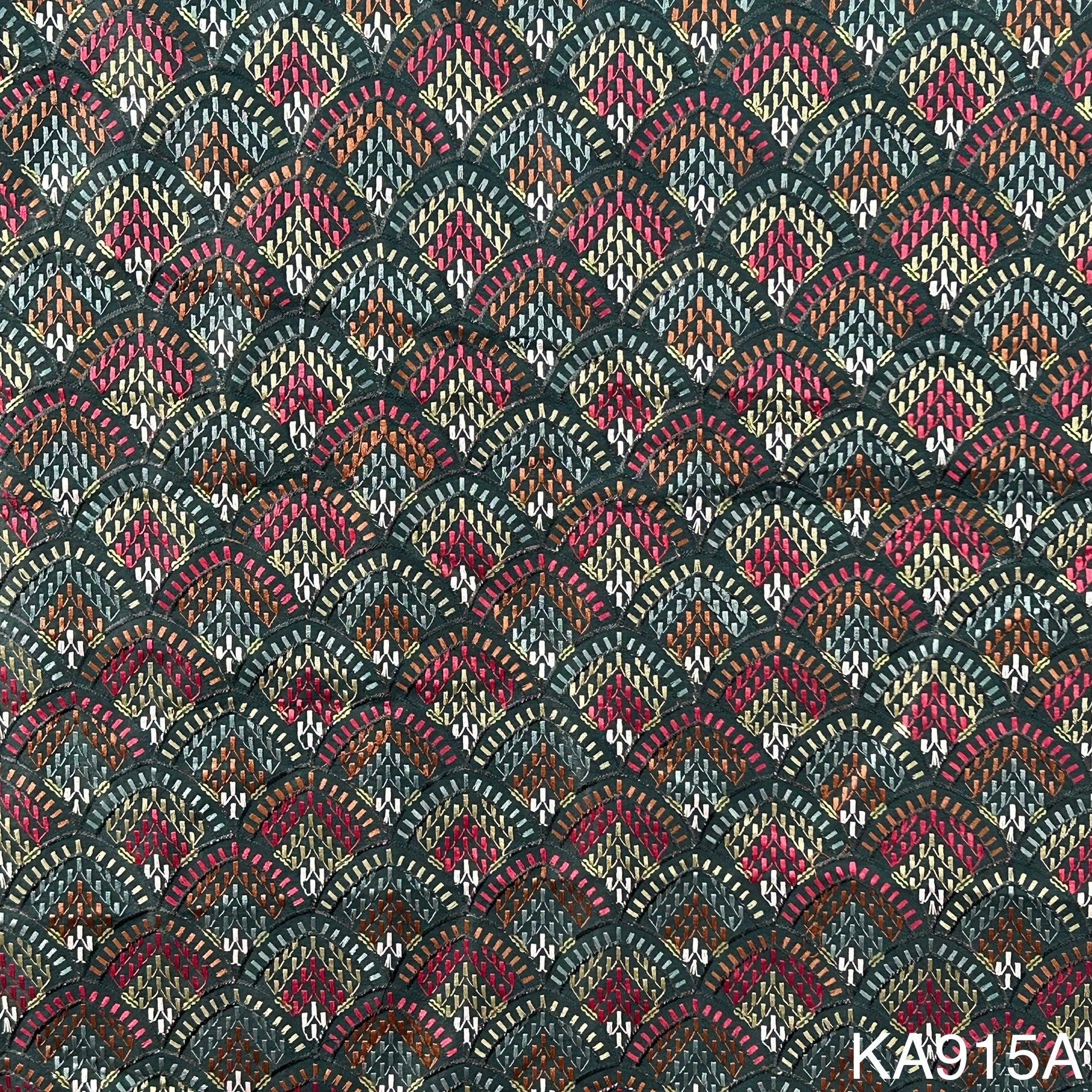 Thread Embroidered Sequins Raw Silk Fabric KA915