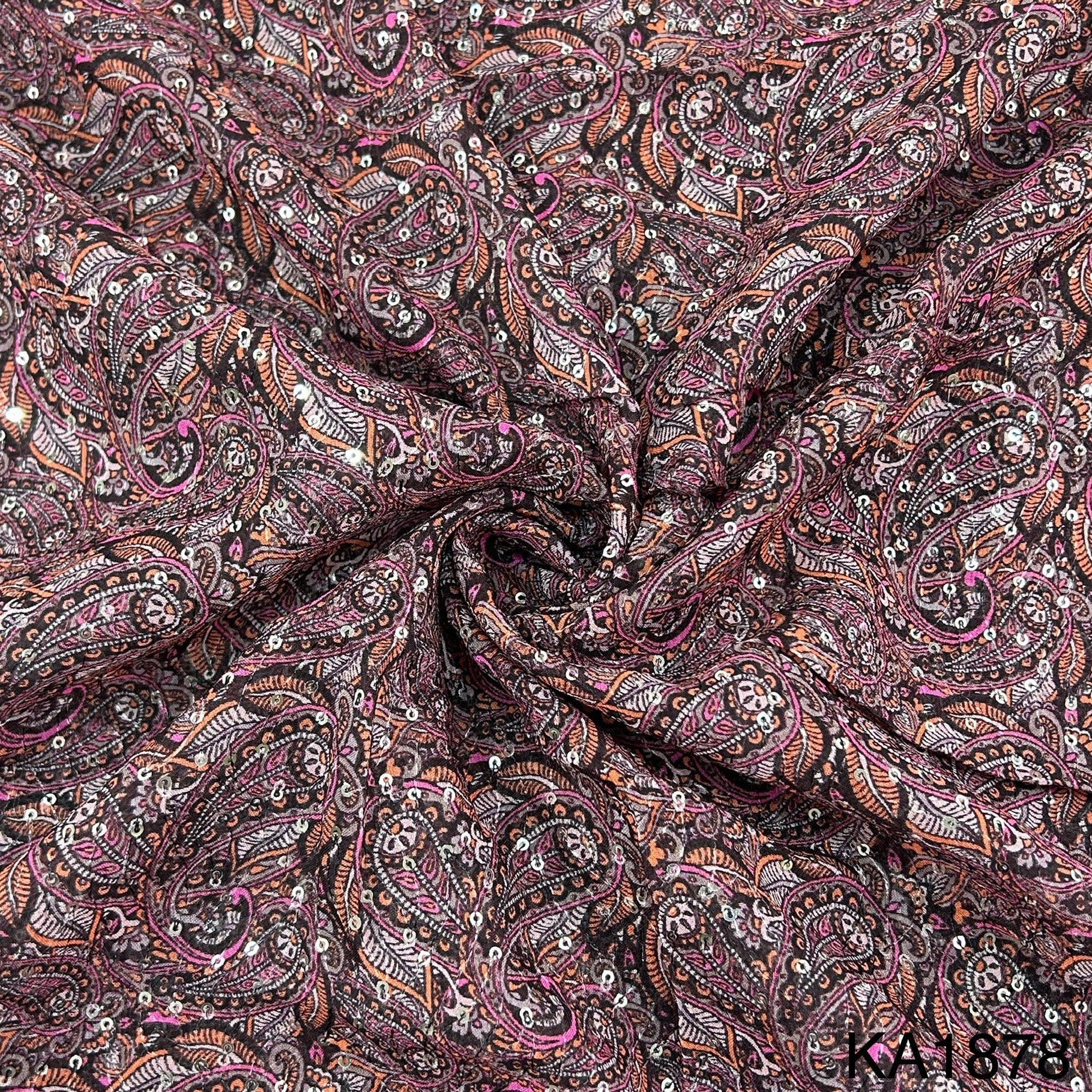 Printed Sequins Georgette Fabric-KA1878
