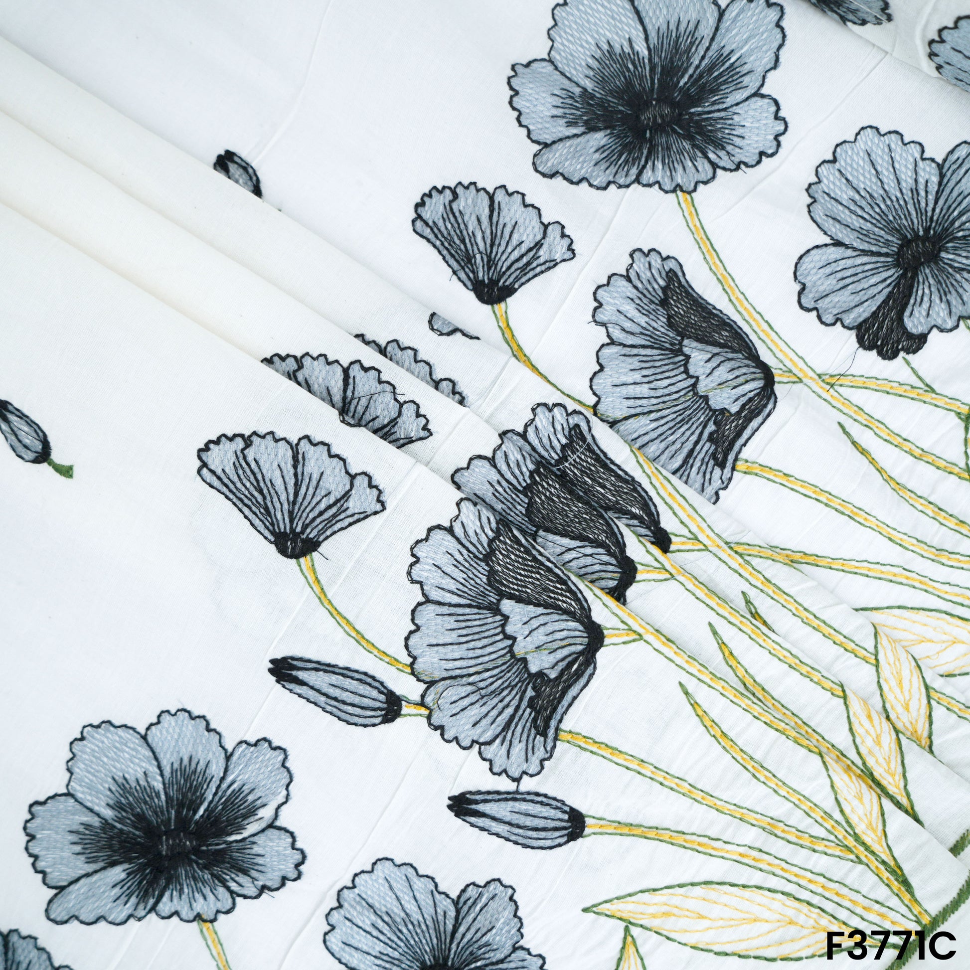 Thread Embroidered Cambric Cotton Fabric-F3771