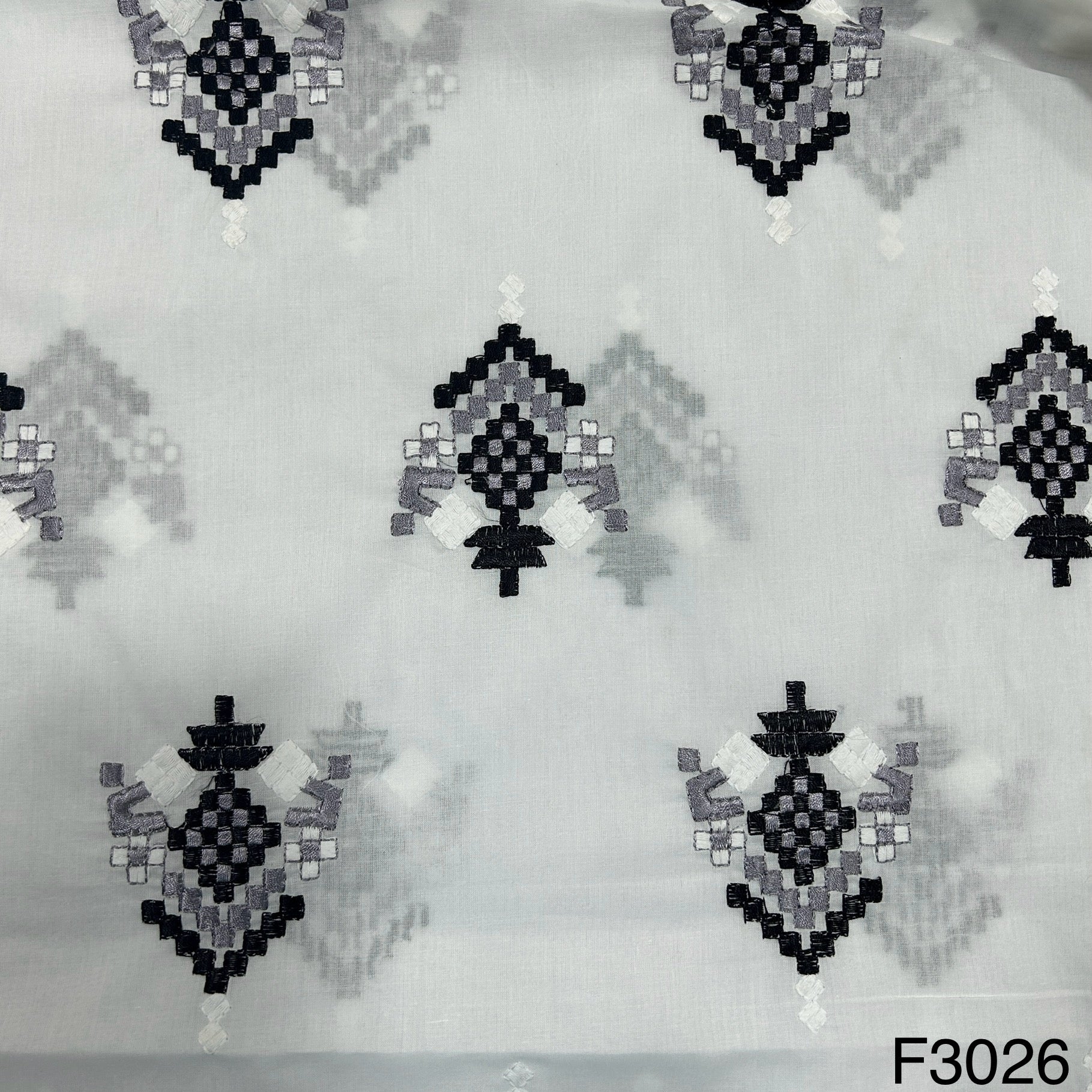 Thread Embroidered Cotton Fabric-F3026