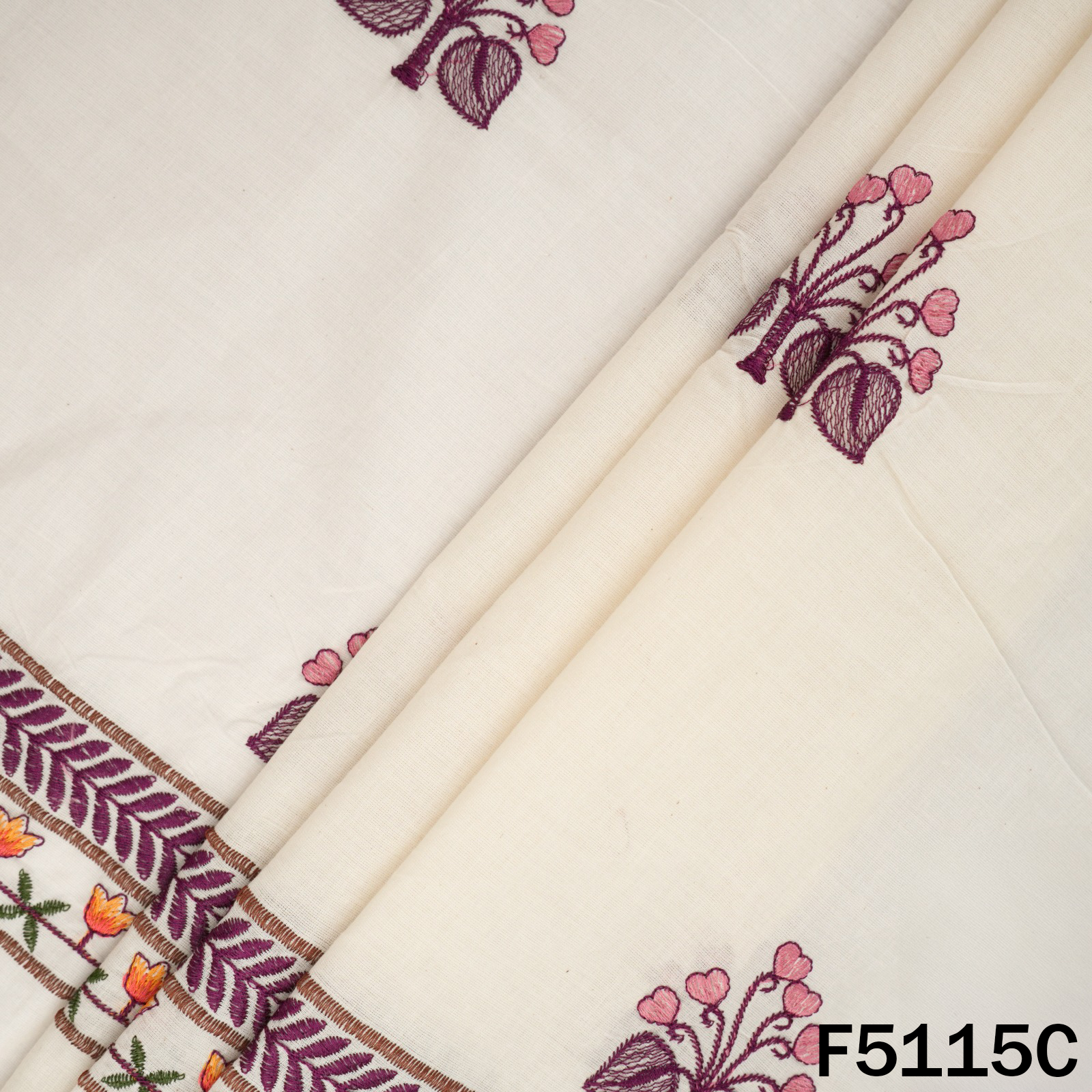 Thread Embroidered Kora Cotton Fabric - F5115
