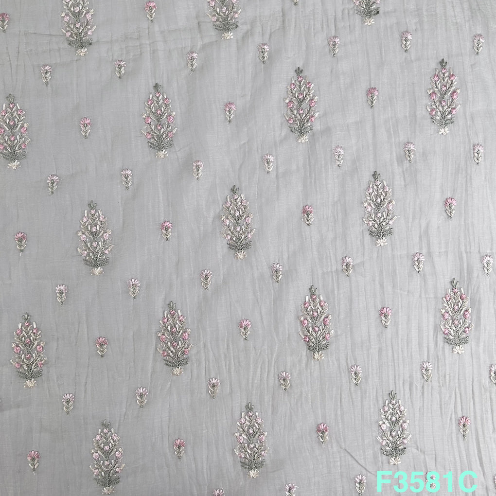 Thread Embroidered Mul Chanderi Fabric-F3581