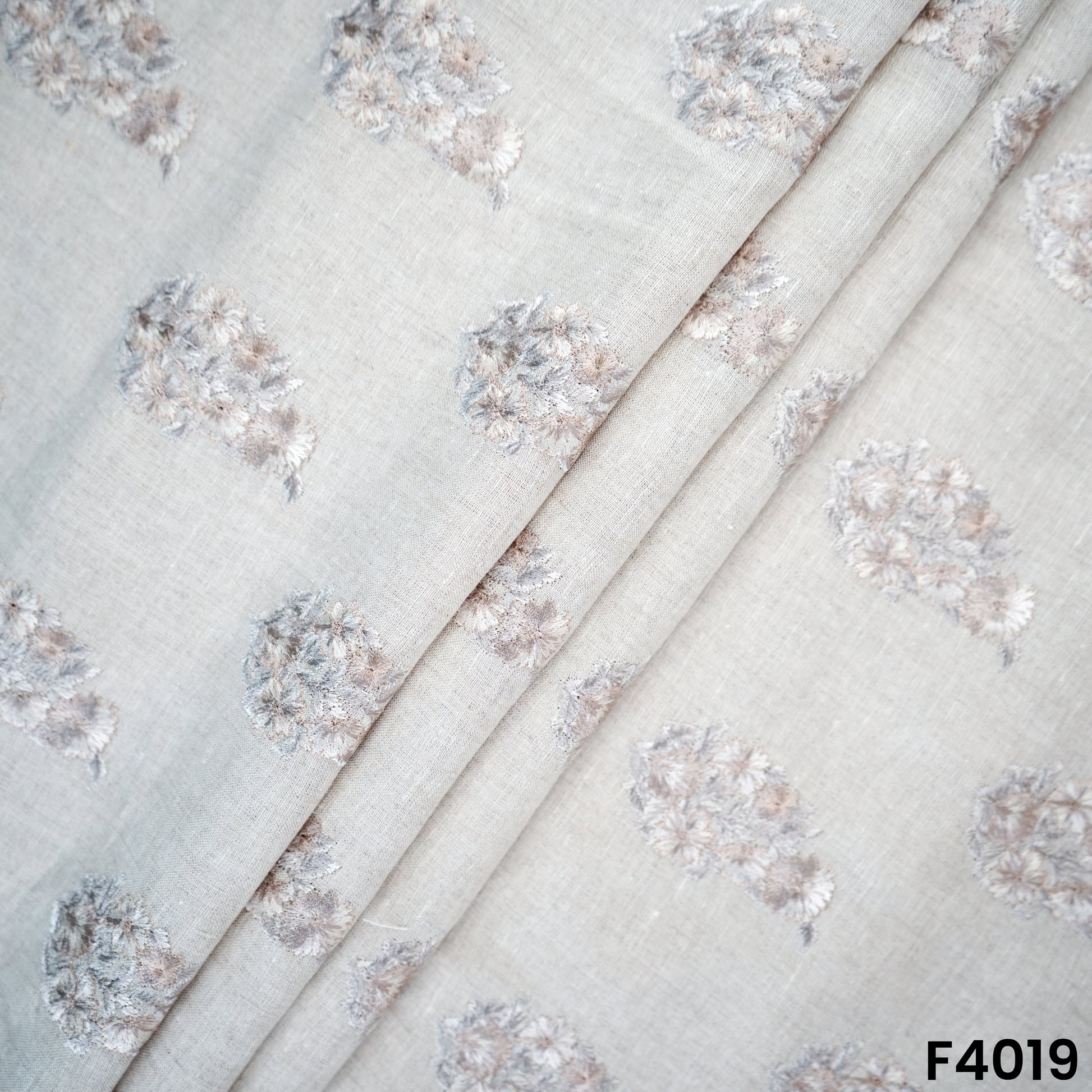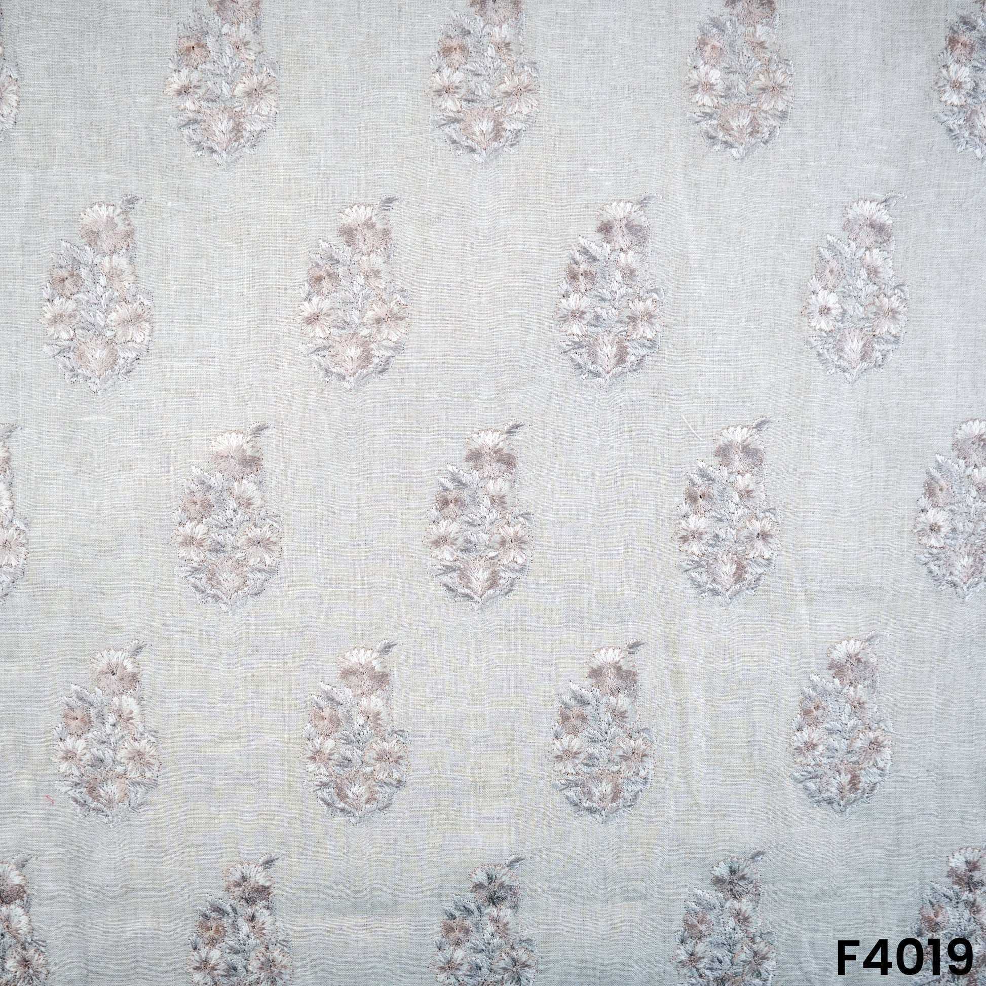 Thread Embroidered Pure Linen Cotton Fabric- F4019