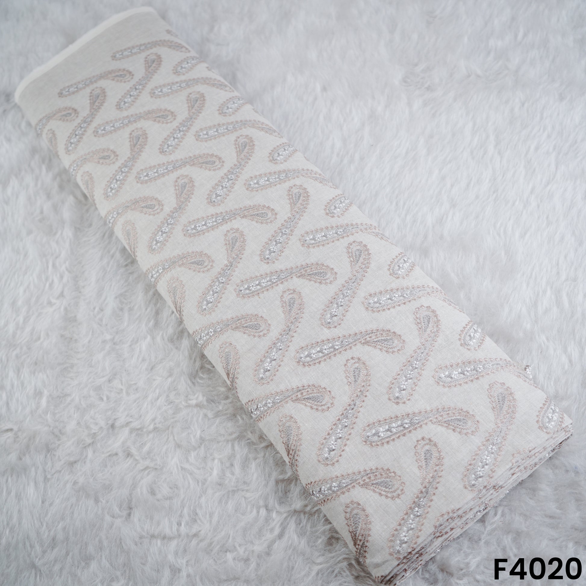 Thread Embroidered Pure Linen Cotton Fabric- F4020