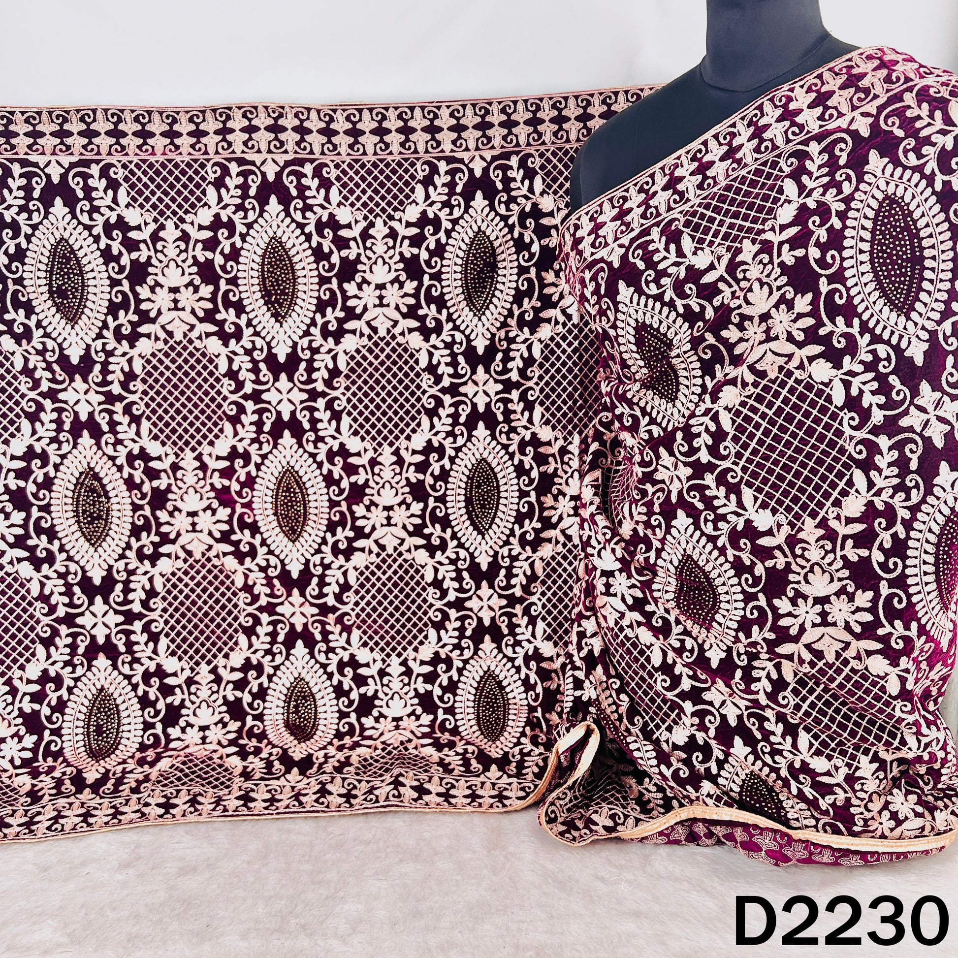 Elevate your festive and wedding looks with this luxurious velvet dupatta, adorned with intricate thread embroidery and delicate stone work. The rich texture and detailed craftsmanship make it a perfect choice to pair with ethnic ensembles, adding elegance and regal charm to your attire. Ideal for special occasions and celebrations, this dupatta beautifully blends tradition with sophistication.