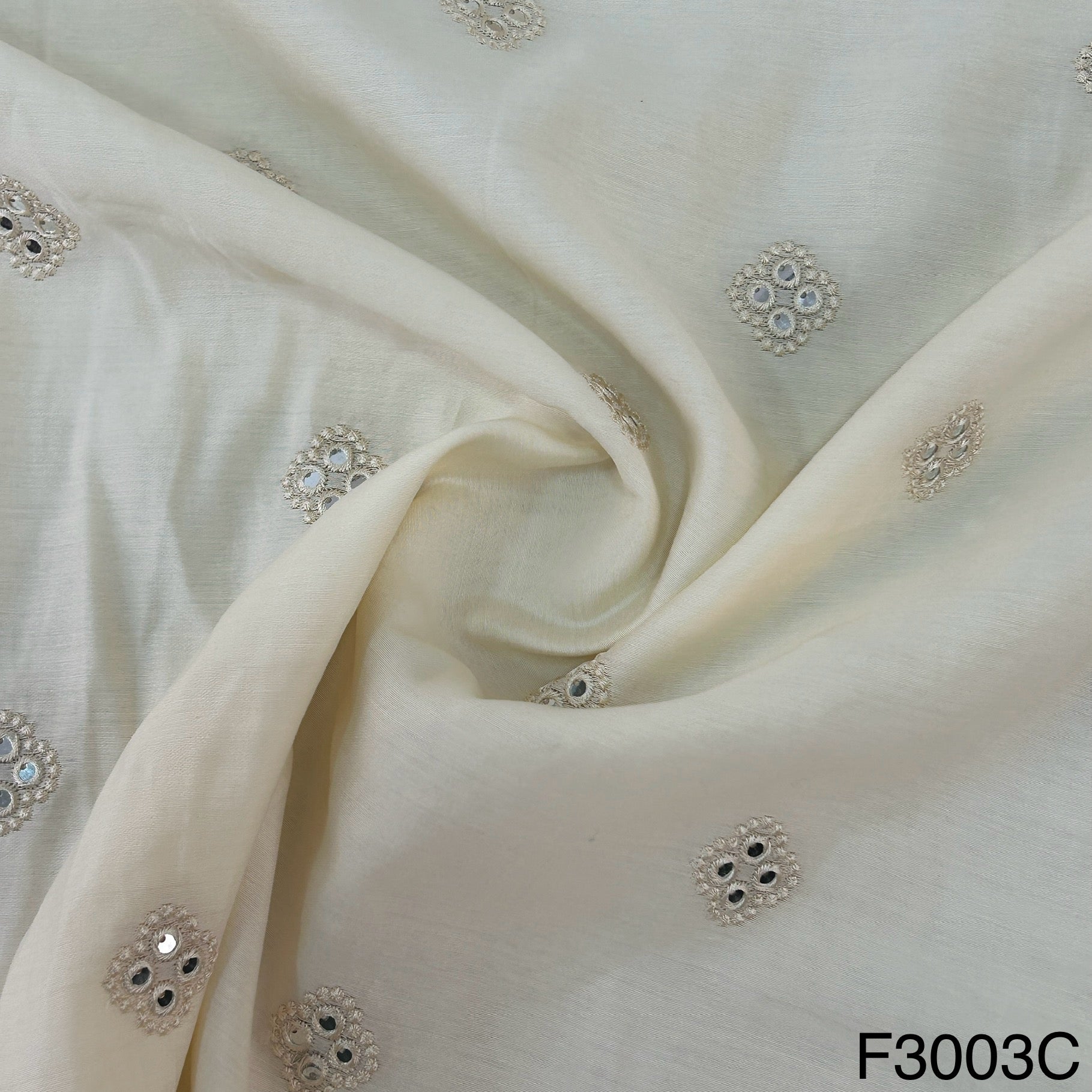 Thread Mirror Work Cotton Silk Fabric-F3003